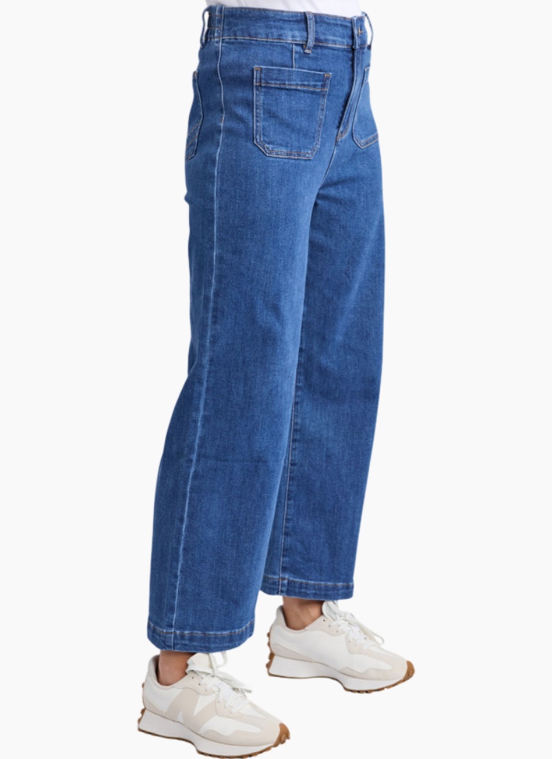 The Alyssa Front Pocket Jean features a practical front pocket design complemented by a secure zip-up closure and belt loops for added versatility. Crafted for both style and function, these jeans are a perfect essential for any outfit! Wide leg High Rise Two Front Pockets