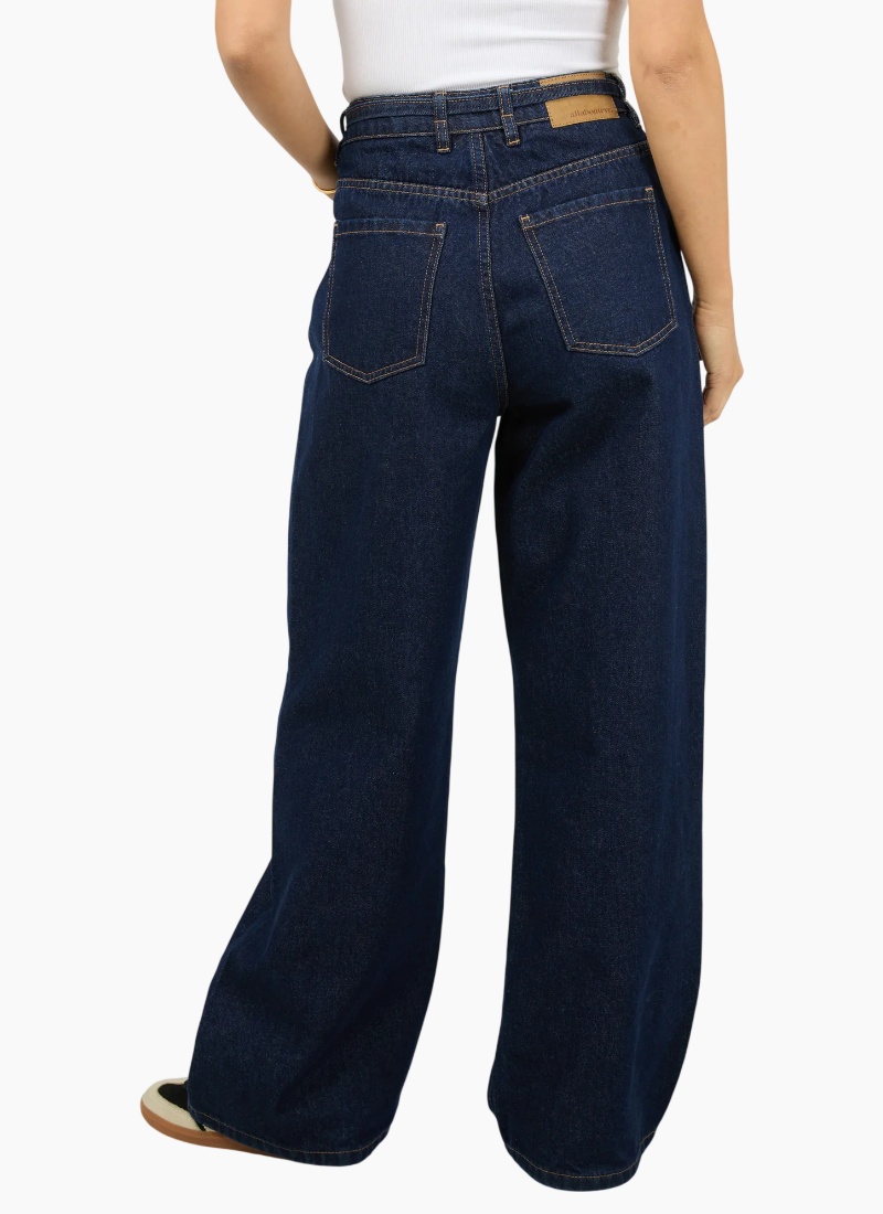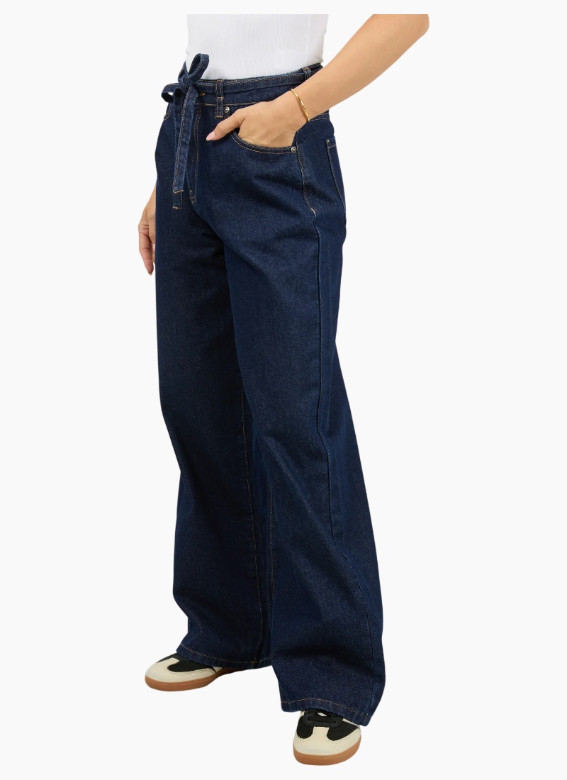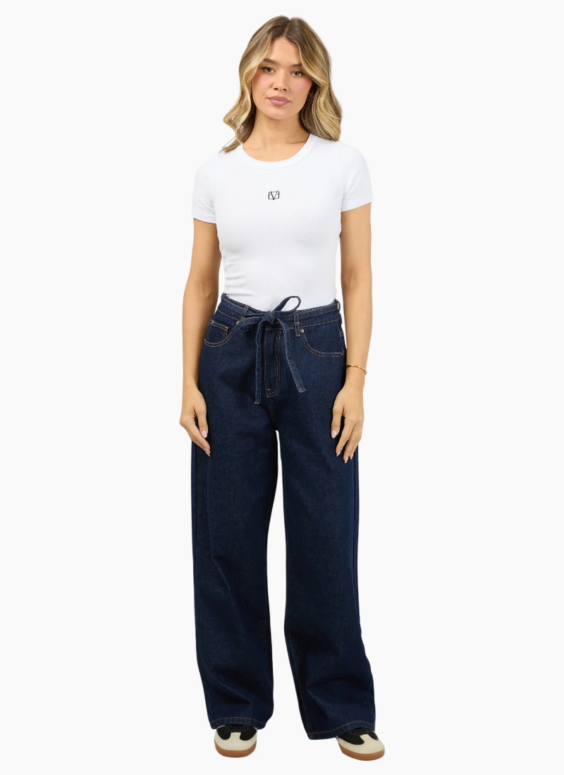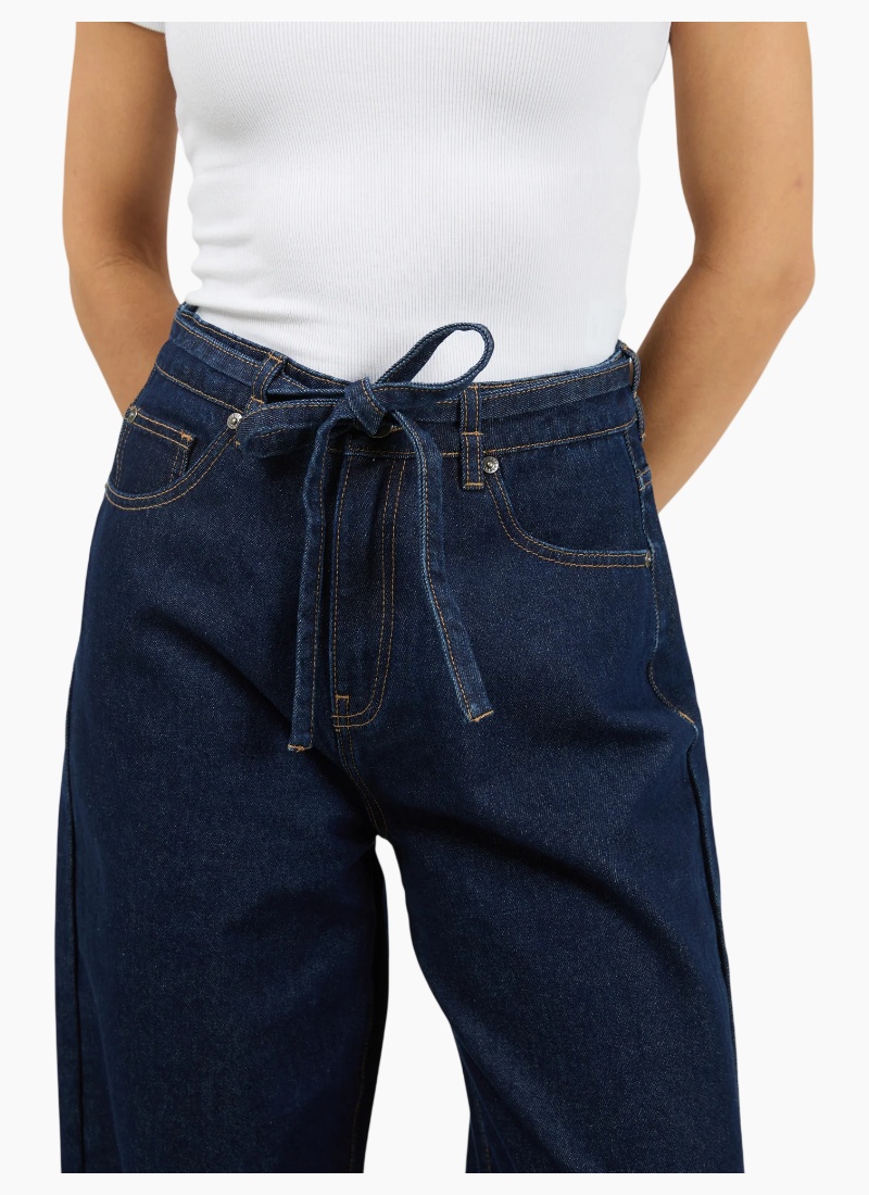 Upgrade your denim collection with these Baggy High-Waisted Jeans, designed for effortless style and all-day comfort. Crafted from durable cotton denim, this relaxed-fit silhouette features a high-rise waist that cinches with a self-fabric belt, adding a subtle statement and customizable fit. A classic zip fly with button closure ensures ease of wear, while the traditional five-pocket design delivers timeless functionality. Finished with subtle stitching and soft fading, these jeans offer a perfect blend of vintage inspiration and modern edge. High rise Baggy leg Non stretch denim 100% Cotton Model is wearing a size 8