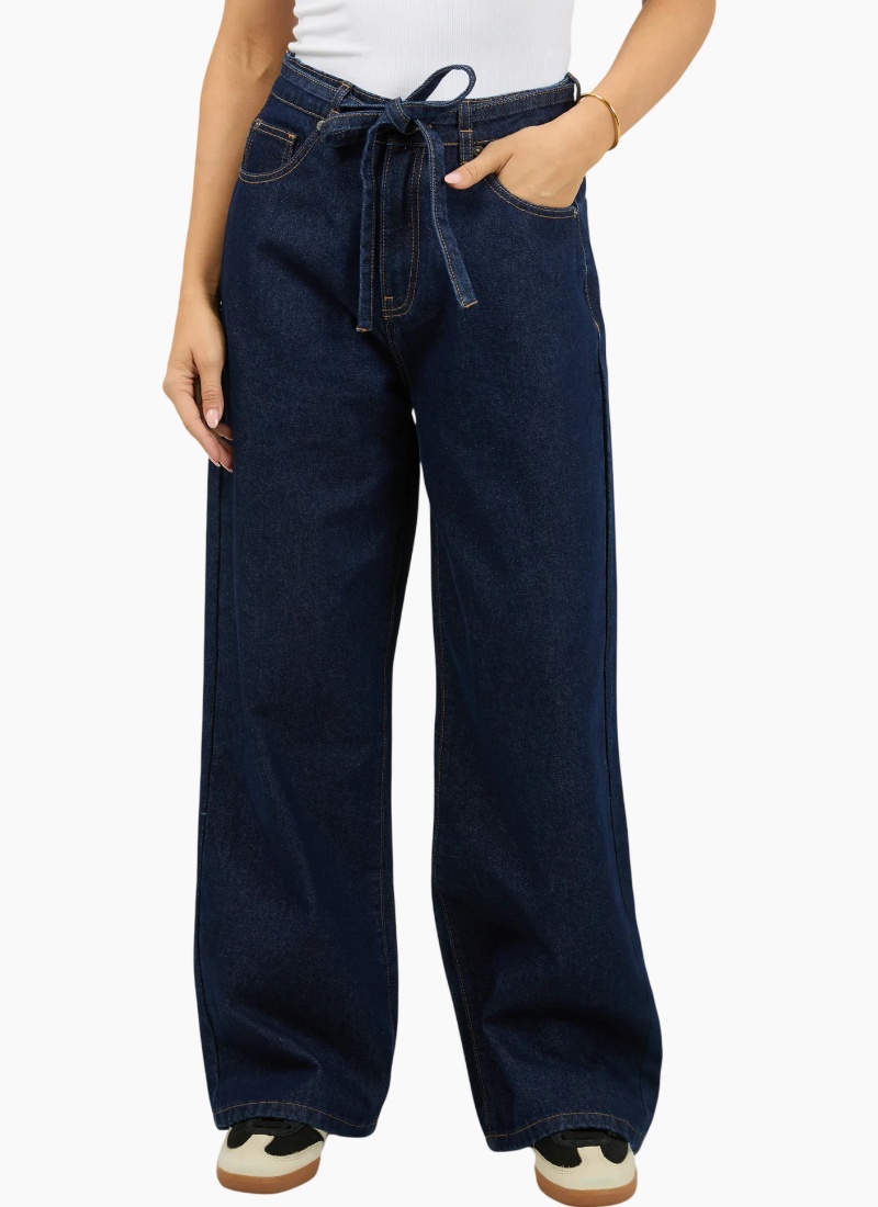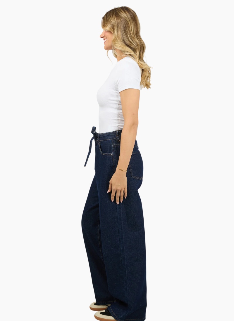Upgrade your denim collection with these Baggy High-Waisted Jeans, designed for effortless style and all-day comfort. Crafted from durable cotton denim, this relaxed-fit silhouette features a high-rise waist that cinches with a self-fabric belt, adding a subtle statement and customizable fit. A classic zip fly with button closure ensures ease of wear, while the traditional five-pocket design delivers timeless functionality. Finished with subtle stitching and soft fading, these jeans offer a perfect blend of vintage inspiration and modern edge. High rise Baggy leg Non stretch denim 100% Cotton Model is wearing a size 8