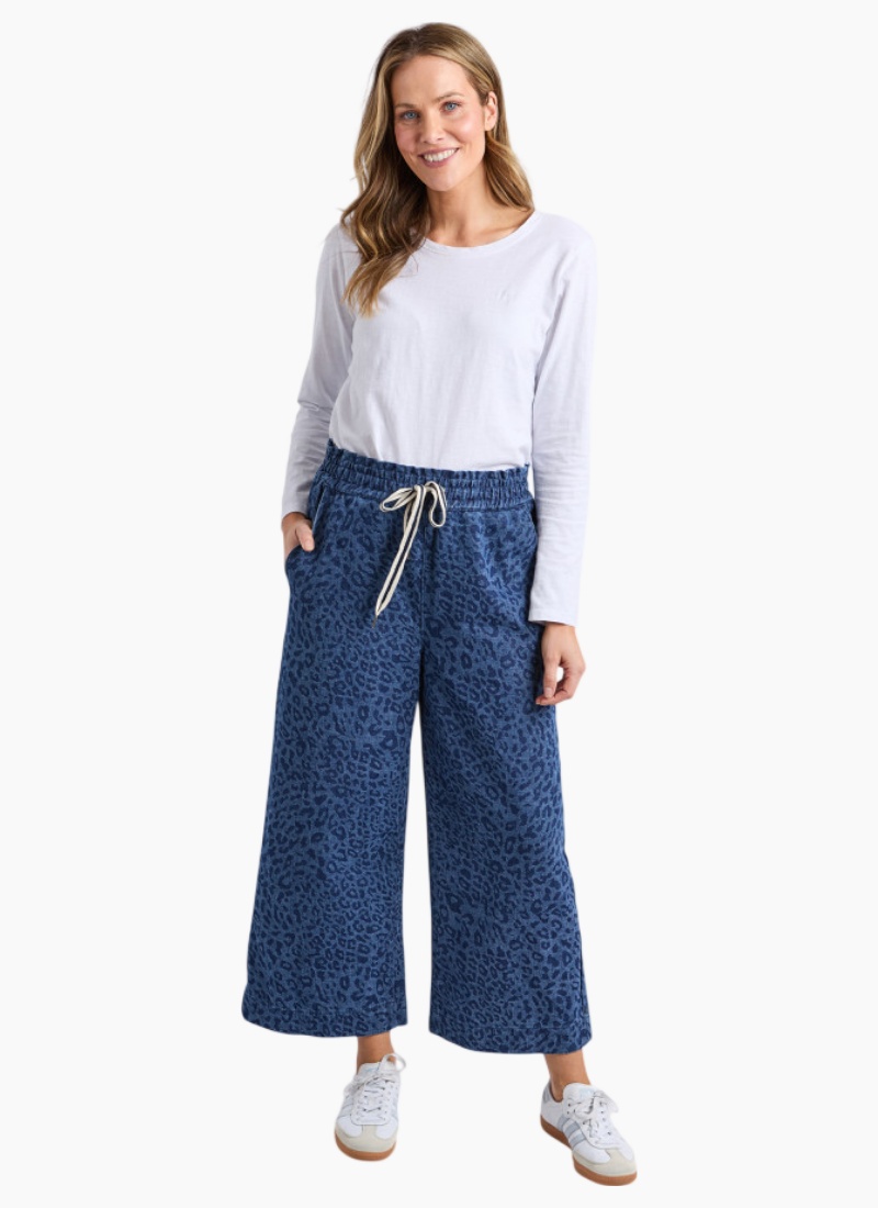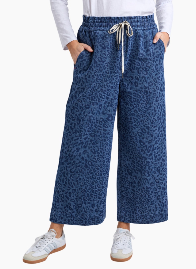 Embrace effortless style with these Anna Animal Denim Pants, featuring a bold animal print that turns heads. Cut in flattering wide-leg silhouette, they offer comfortable movement without compromising on edge. The rigid denim holds its shape beautifully, while the wide elasticated waistband with front tie ensures a secure, customizable fit that works with your body. Perfect for creating statement looks that feel as good as they lookRigid denim Elm runs on the larger side