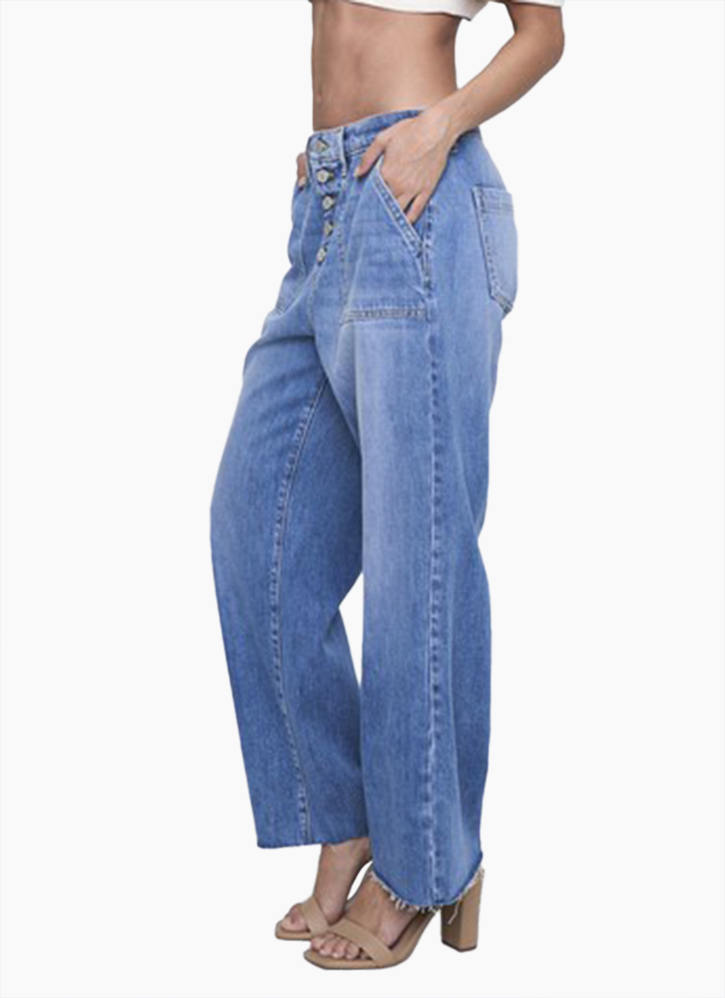 Made from non-stretch denim with an exposed-button fly, these '70s-inspired jeans with wide legs are destined to become a trendy closet staple.