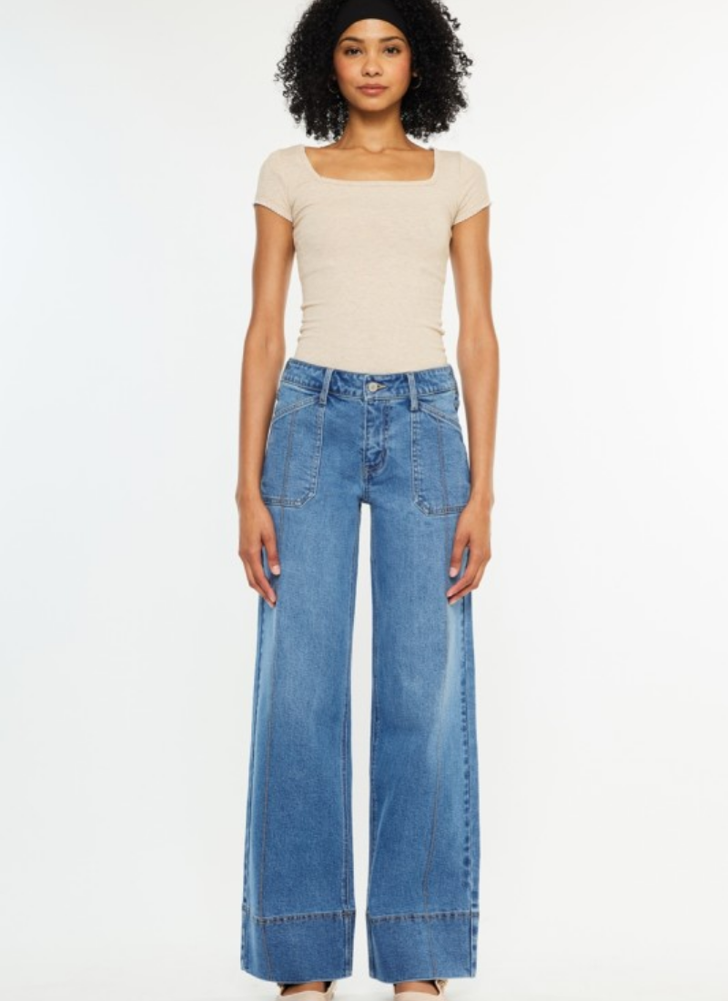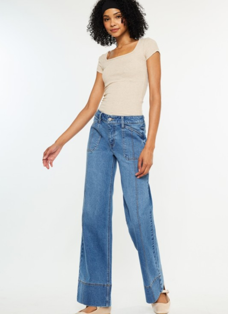 Mid Rise Wide Leg is a style whose simplicity is meant to stand out. In a medium light wash that radiates a rich denim color. Comfort stretch style that is breathable and holds its shape even after a wash. Features a single button closure with a zip-fly, 4" wide hem, and stitch details at the front. 9.5" Rise / 32" Inseam / 1.5" Waistband in Size 5/26 99% Cotton, 1% Spandex Model in size 3/25 Stretchiness Level >> Comfort Stretch SIZE WAIST HIP 1/24 27.5" 35.5" 3/25 28.5" 36.5" 5/26 29.5"37.5" 7/27 30.5"38.5" 9/28 32"40" 11/29 33.5"41.5" 13/30 35"43" 15/31 36.5"44.5" Care instructions Wash Cold Inside Out Wear More, Wash Less No Chemicals, Please. Air Dry is Recommended Tumble Dry Low If You Must. Don't pull them from the belt loops. Pull them from the waistband. HH76227