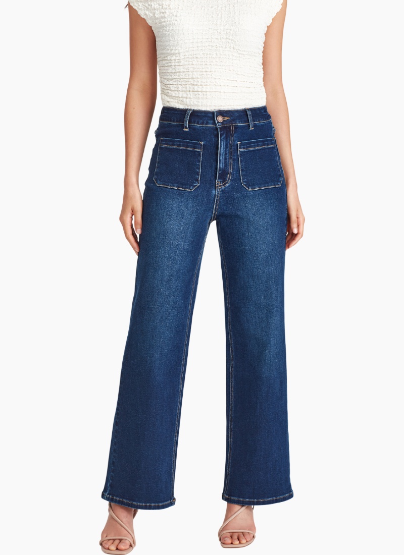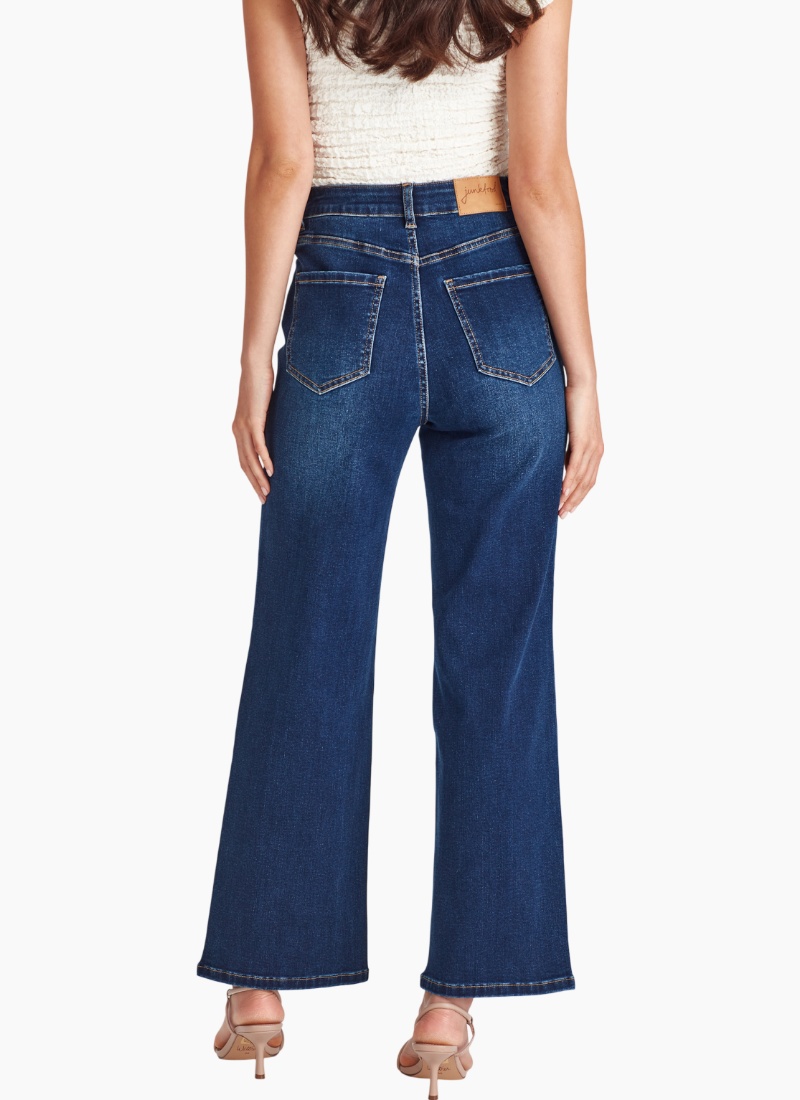 Introducing the Libby Wide Leg Dk Blue Medium length from Junkfood. These contemporary jeans bring timeless denim style with an easy, wearable silhouette.