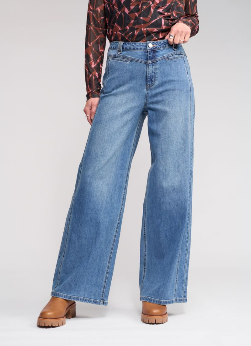 Introducing the Hollie Jean in Vintage Denim K7119 from Knewe. These wide-leg jeans combine timeless denim character with an effortlessly modern silhouette.
