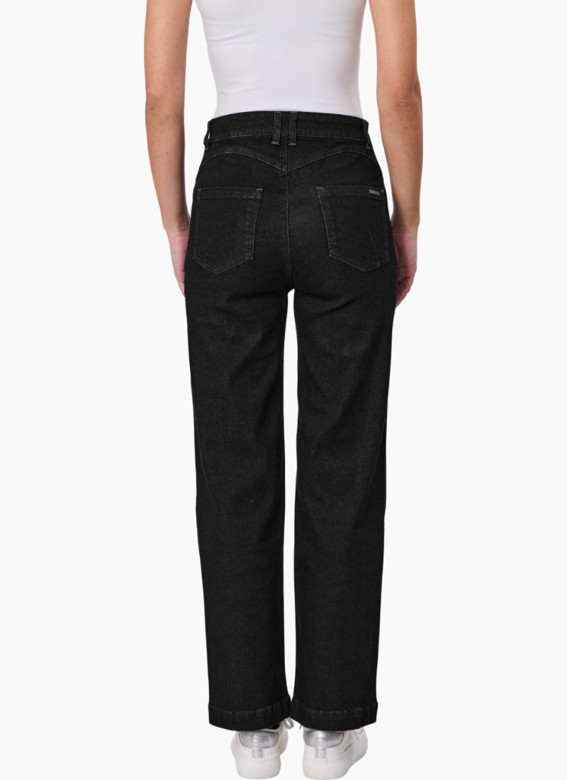 - Classic five-pocket styling, belt loops and a shaped back yoke for subtle lift and structure