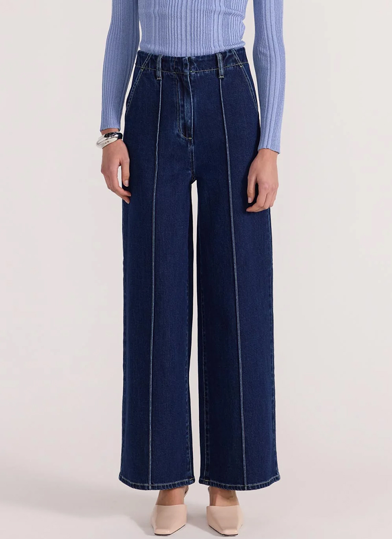 A modern update to classic denim, the Lennox High Waist Jeans feature a flattering high-rise silhouette and wide-leg shape that elongates the figure. Crafted in a structured, non-stretch cotton denim, this indigo wash style is finished with contrast topstitching and clean vertical seams for a refined, tailored finish. Designed to elevate your everyday wardrobe, the Lennox Jeans pair effortlessly with soft knits, tailored shirting or statement outerwear.- High-rise waistline with a wide-leg fit- Full-length with vertical front seam detail- Classic five-pocket design- Button and zip fly closure- Structured, non-stretch denim with contrast stitching-Designed in Sydney, Australia