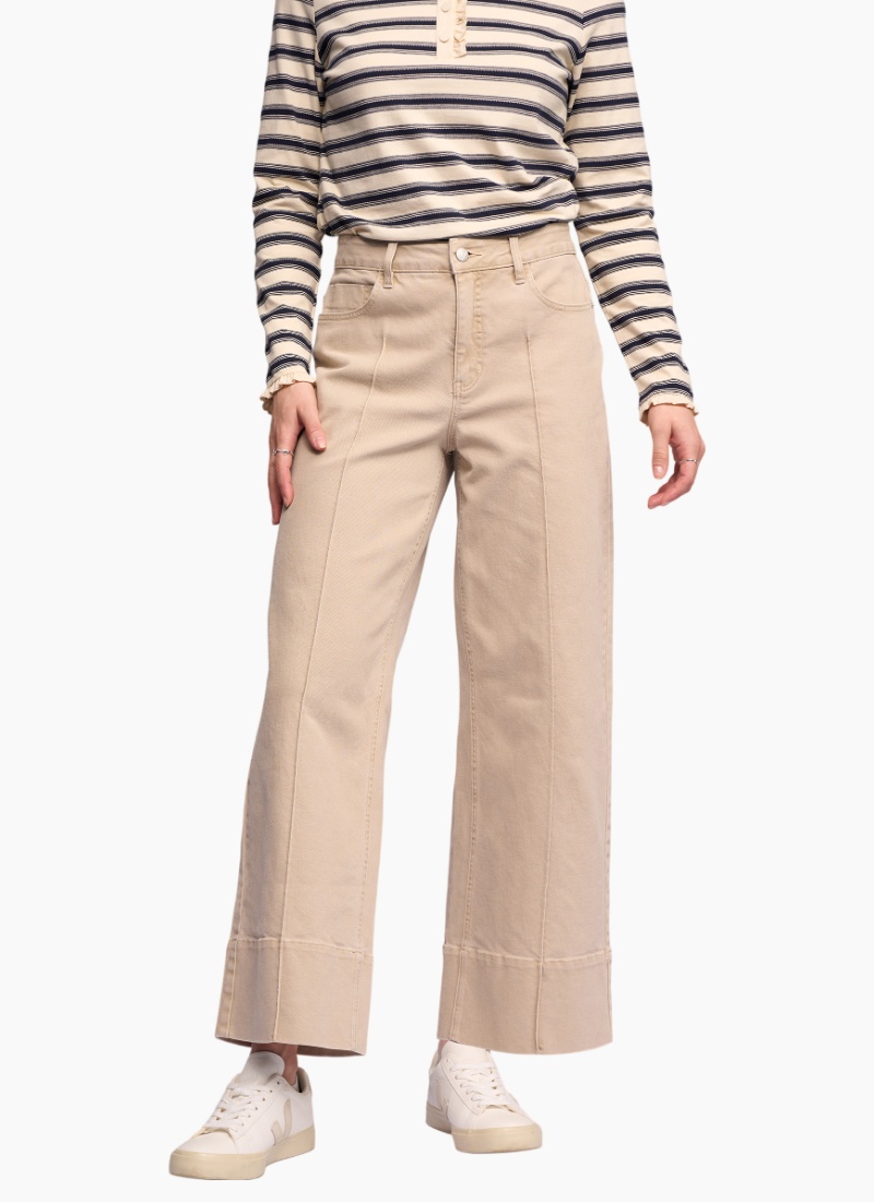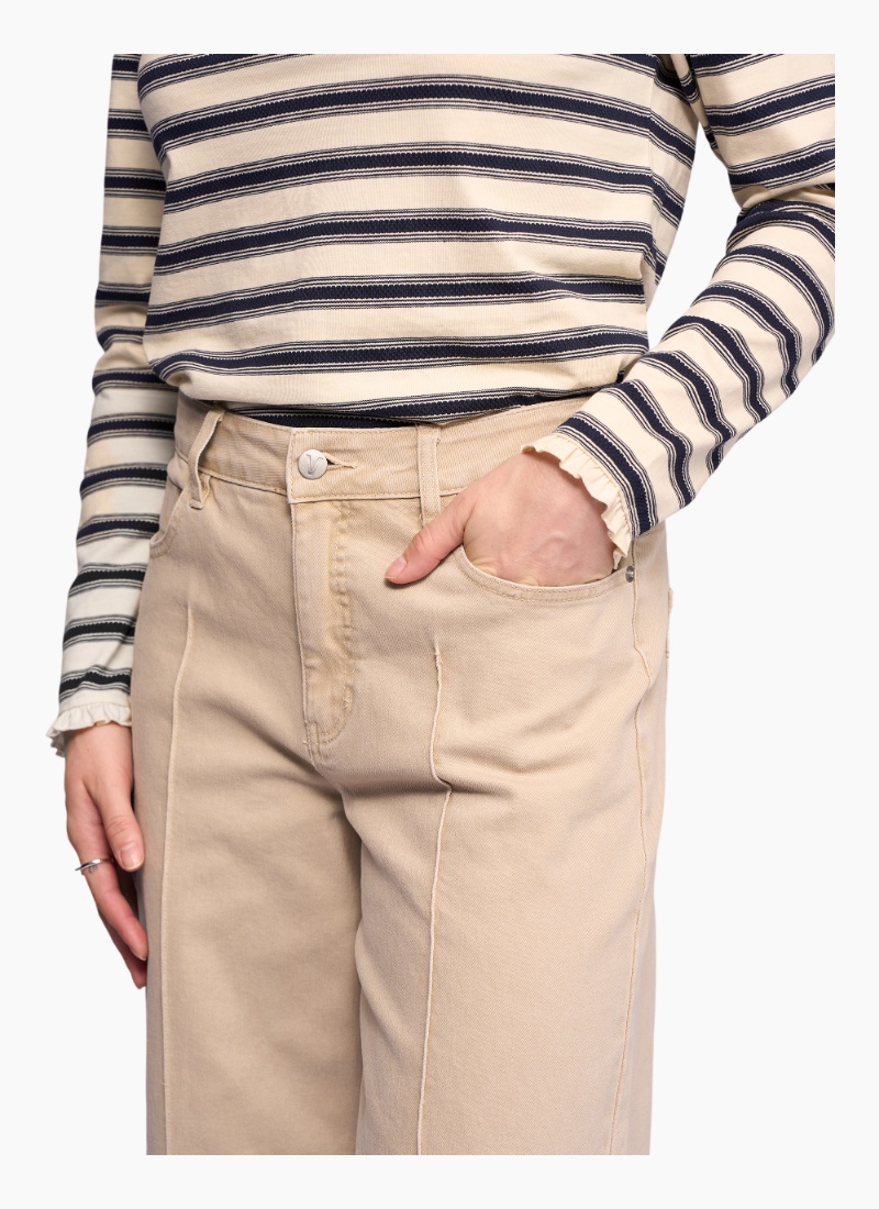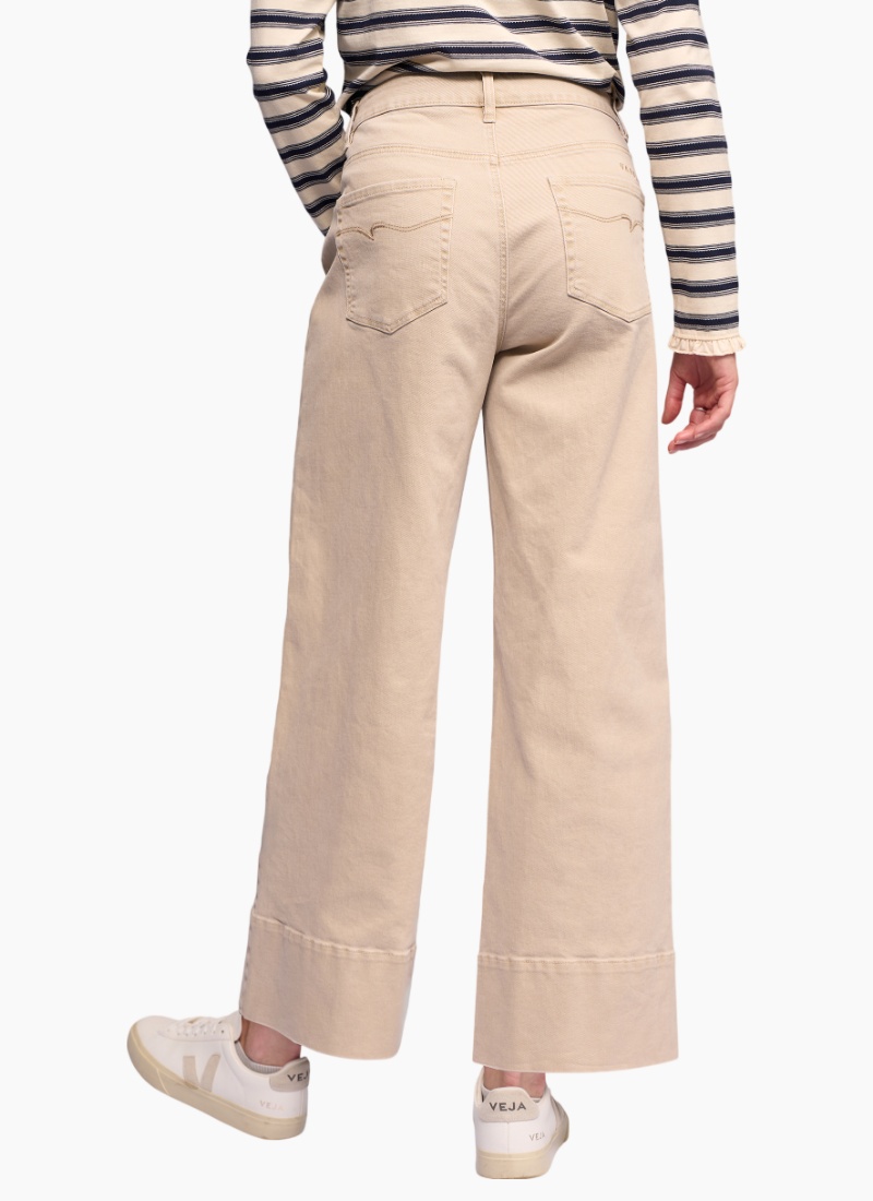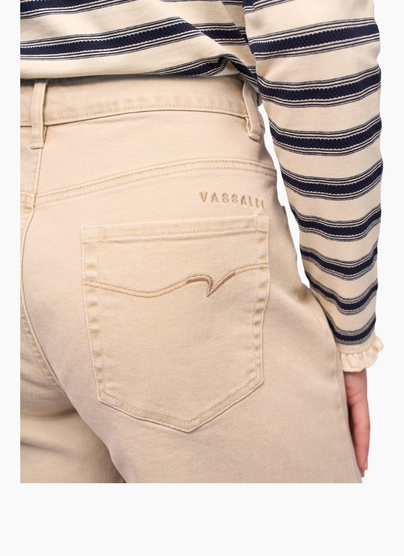Wide-leg ankle-length jean, designed with a deep hem panel and centre-front seam detailing down each leg for a refined, modern finish. Wide leg ankle grazer jean Made from stretch denim for the perfect fit Waistband features metal 'V' logo jean button closure, two front beltloops, and three back beltloops Zip fly Silver button with āVā Vassalli logo Two front slash pockets with coin pocket Two back patch pockets with 'V' stitching detail 'Vassalli' embroidery above wearers right-hand back pocket