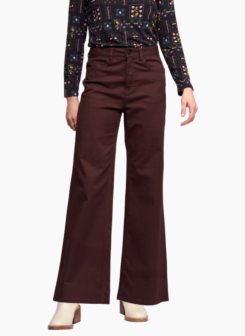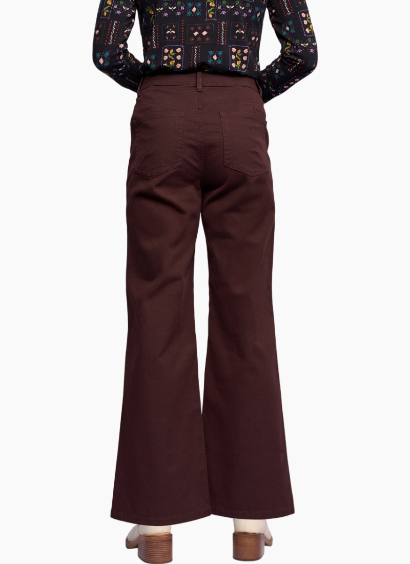 Wide-leg full-length jean in Merlot — a rich dark wine tone. Featuring double side seam detailing, this style offers a flattering shape with a contemporary edge, making it a strong addition to any denim wardrobe. • Wide leg, full-length jean • Made from stretch denim for the perfect fit • Waistband features metal 'V' logo jean button closure, two front beltloops, and three back beltloops • Zip fly • Back patch pockets • 'Vassalli' embroidery above wearers right-hand back pocket • Double seam detail on side of legs • Model wears size 10