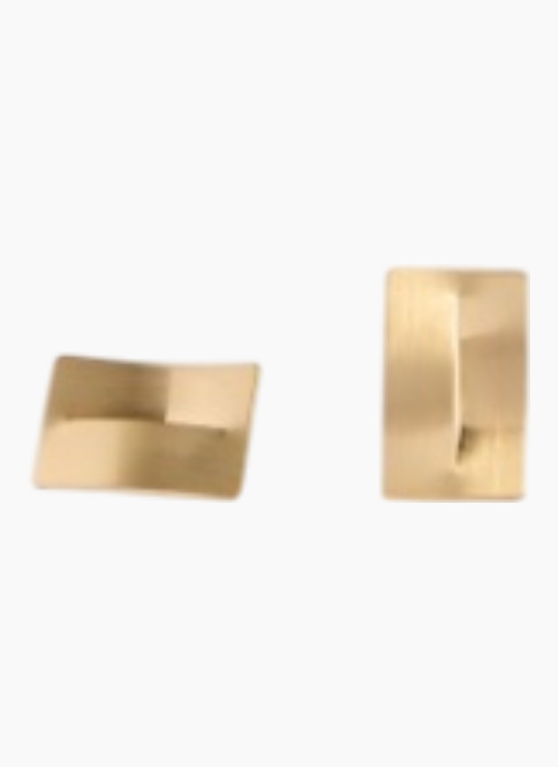 Small stud style with a sculptural element through the folded central cut out -Lightweight style Crafted from brushed metal and comes in Classic Gold