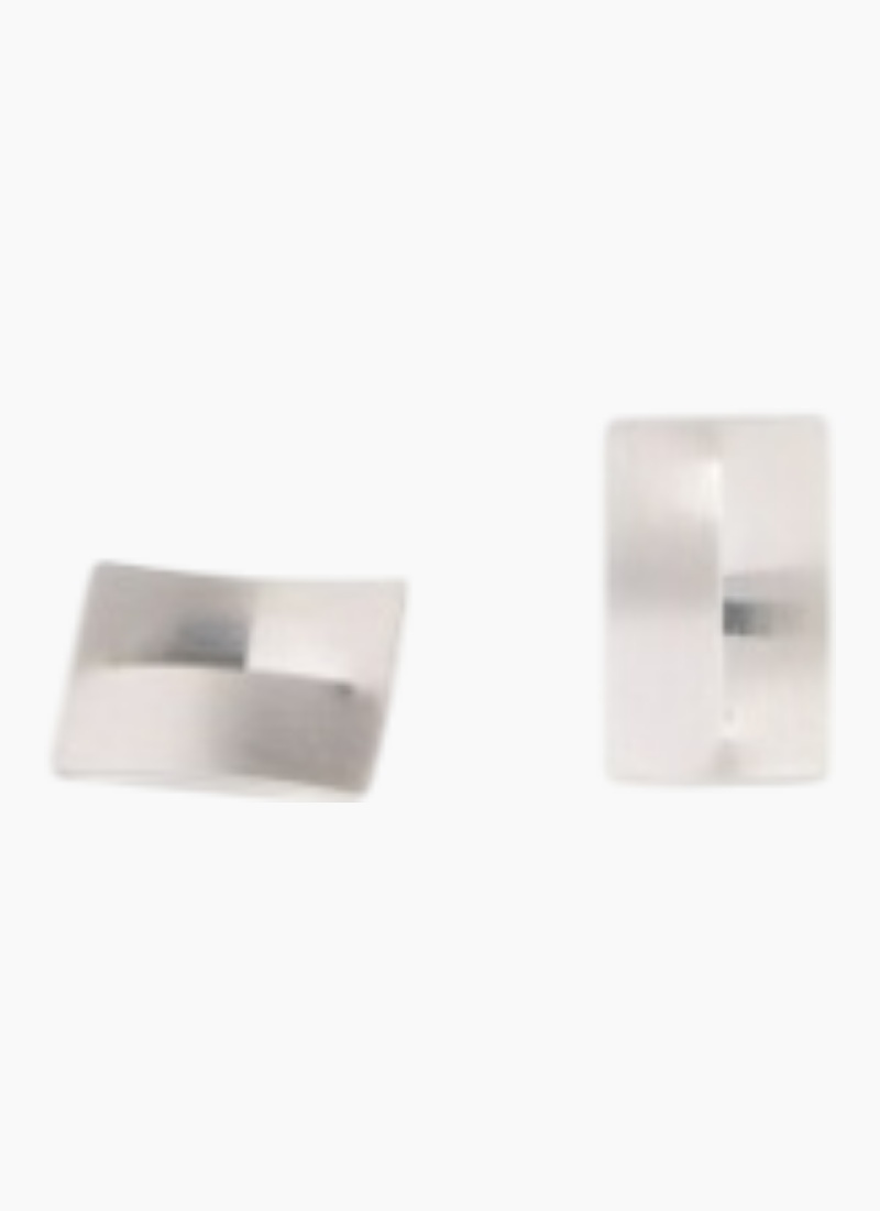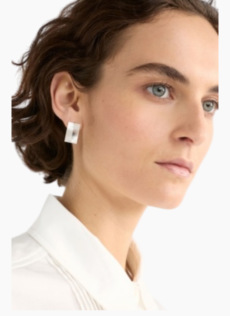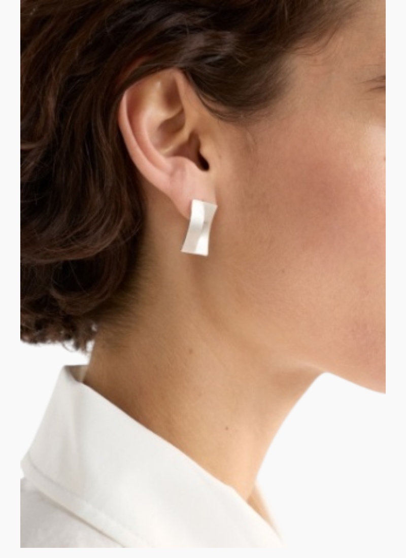 Small stud style with a sculptural element through the folded central cut out -Lightweight style Crafted from brushed metal and comes in Classic Silver