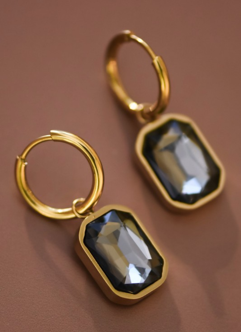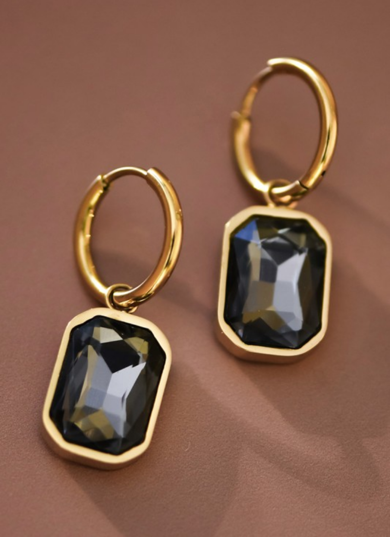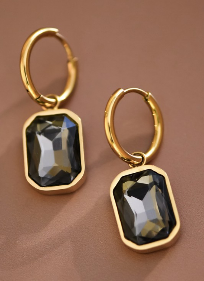 Dial up the drama of your ensemble with these cut crystal drop earrings in a grey hue
