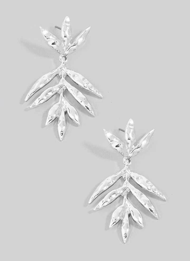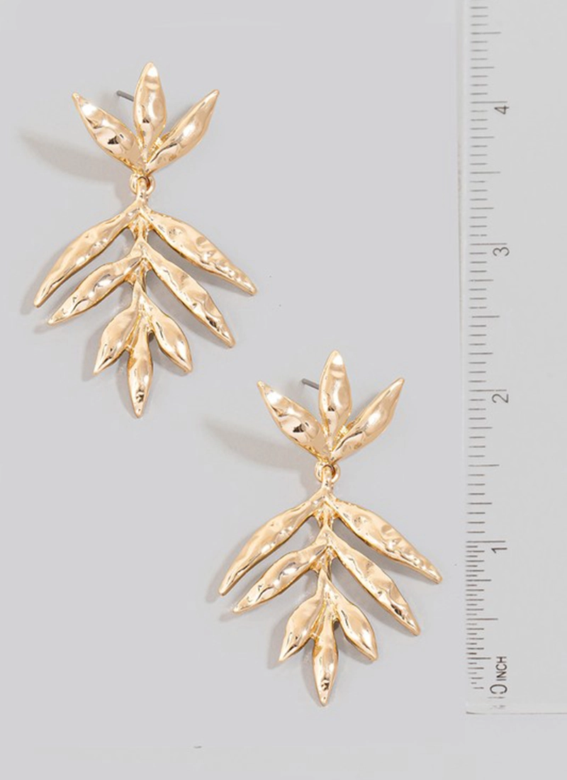 These textured leafy drop earrings add an organic-inspired minimalist look to everyday ensembles.