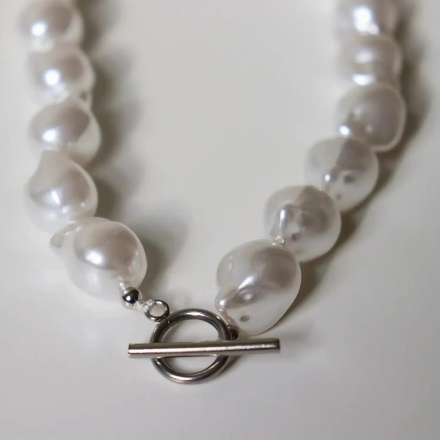 Wear this strand as a short style necklace or double wrapped as a bracelet! Designed to be a very modern, on-trend piece of jewellery, the baroque style pearls have been placed on double knotted cotton for extra durability. The length of the strand is 40cm, and has been paired perfectly with the fob style finish.