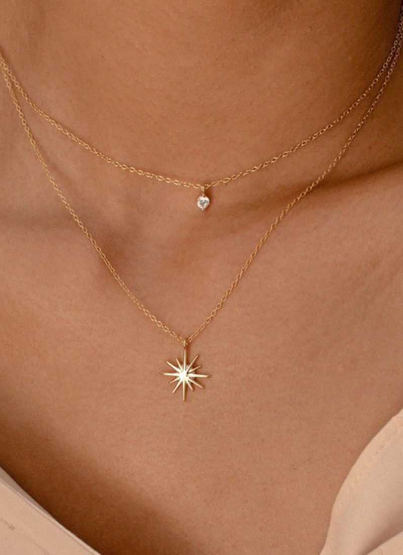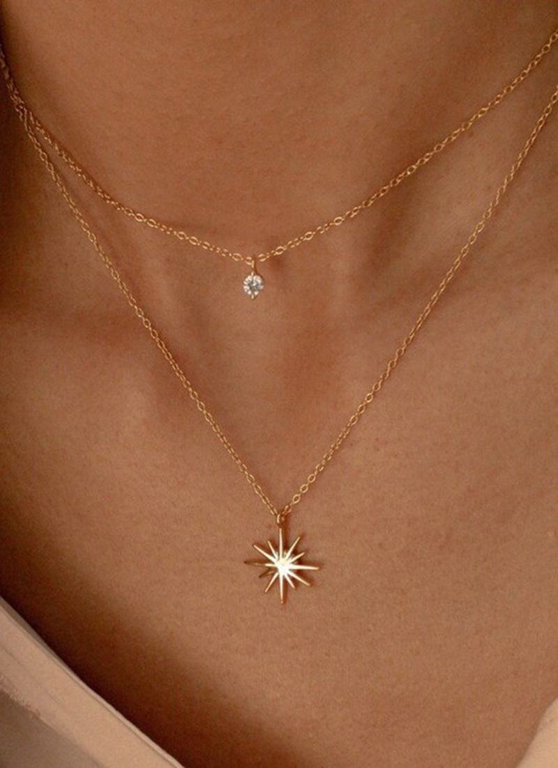18K Gold Dipped Stainless Steel Layered Chain Necklace.