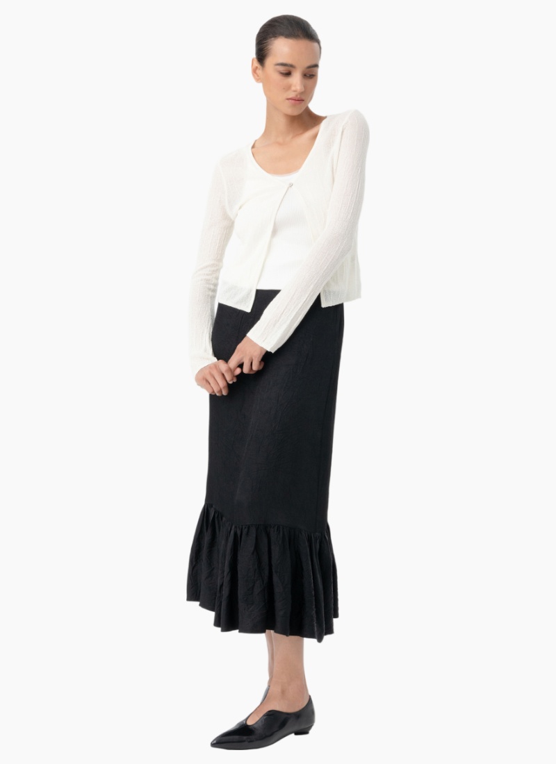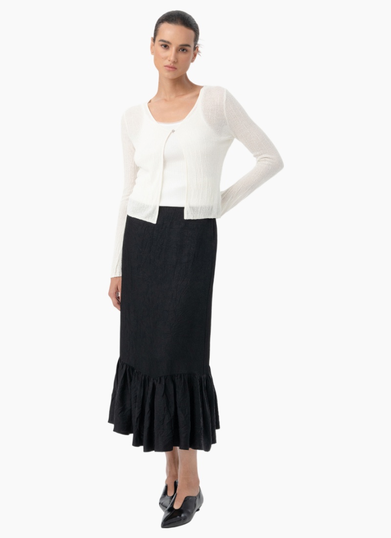 - Crafted from a lightweight knit (viscose blend) for a delicate, semi-sheer finish