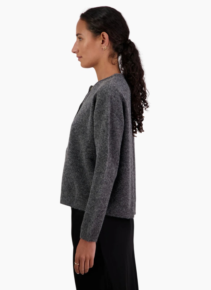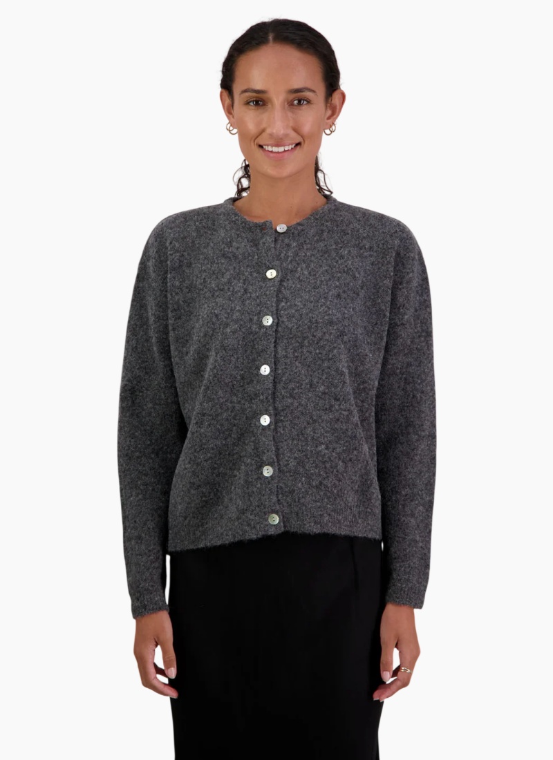 Introducing the Frenchie Cardigan Charcoal from Briarwood. This cosy charcoal cardigan is crafted in a soft wool blend and offers an elegant, pared-back profile ideal for everyday layering.