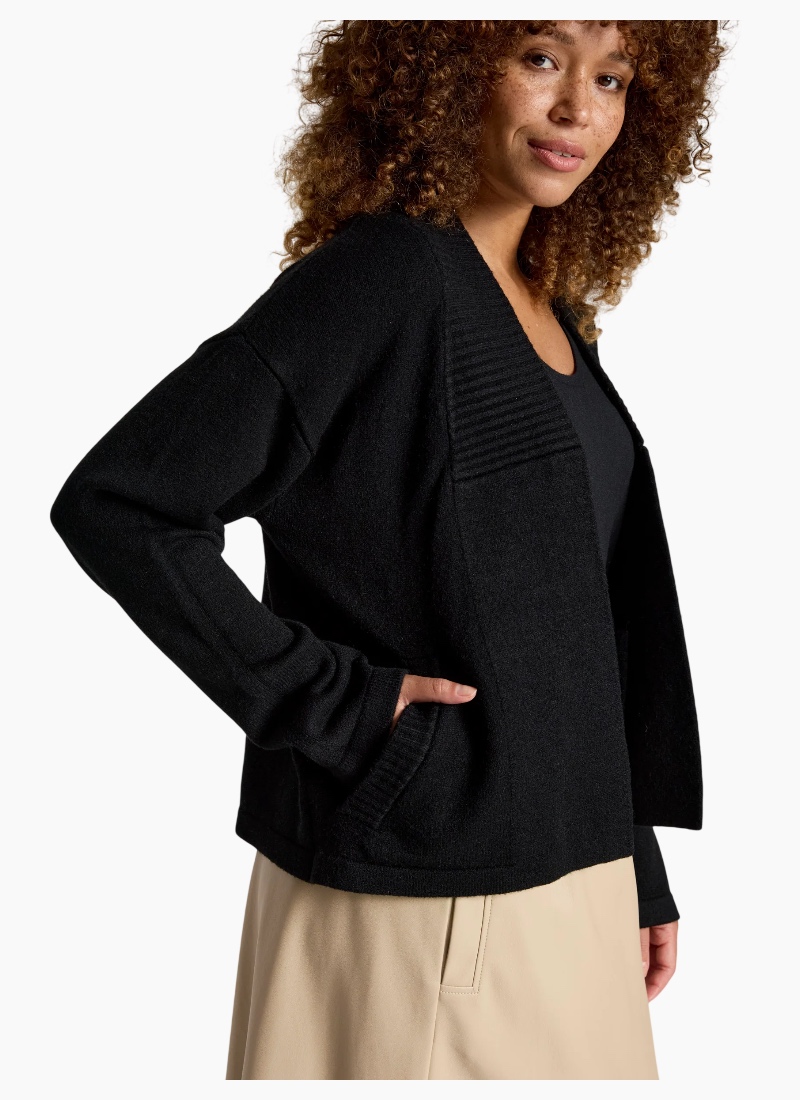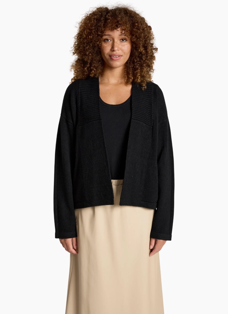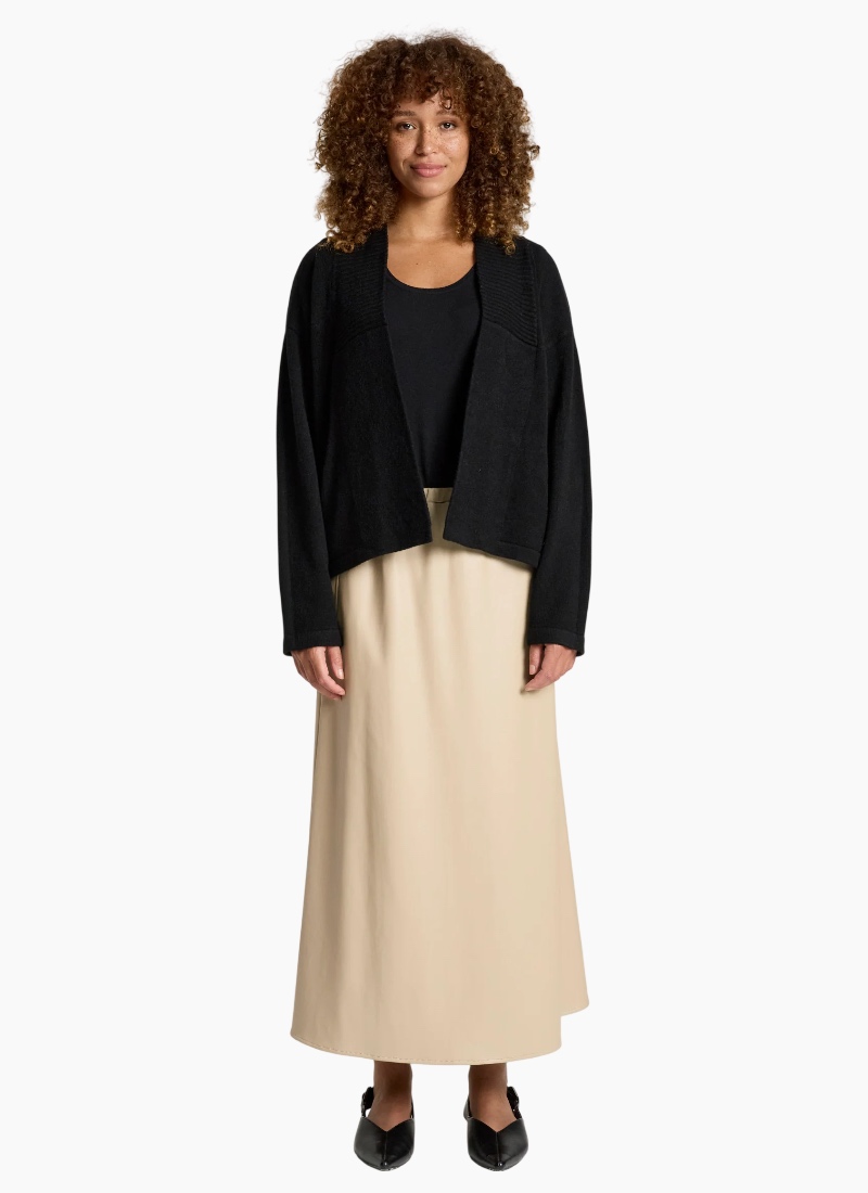 A flattering cropped cardigan designed to highlight the waist. Crafted from a soft knit blend, the Samira Crop Cardigan features a clean silhouette with subtle ribbed detailing through the centre front and practical front pockets. A polished yet easy layering piece for everyday wear. Features Cropped cardigan silhouette Ribbed detailing through centre front Front pockets Soft knit blend Flattering, easy-to-layer shape Care Cold gentle wash recommended.