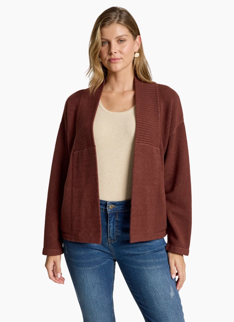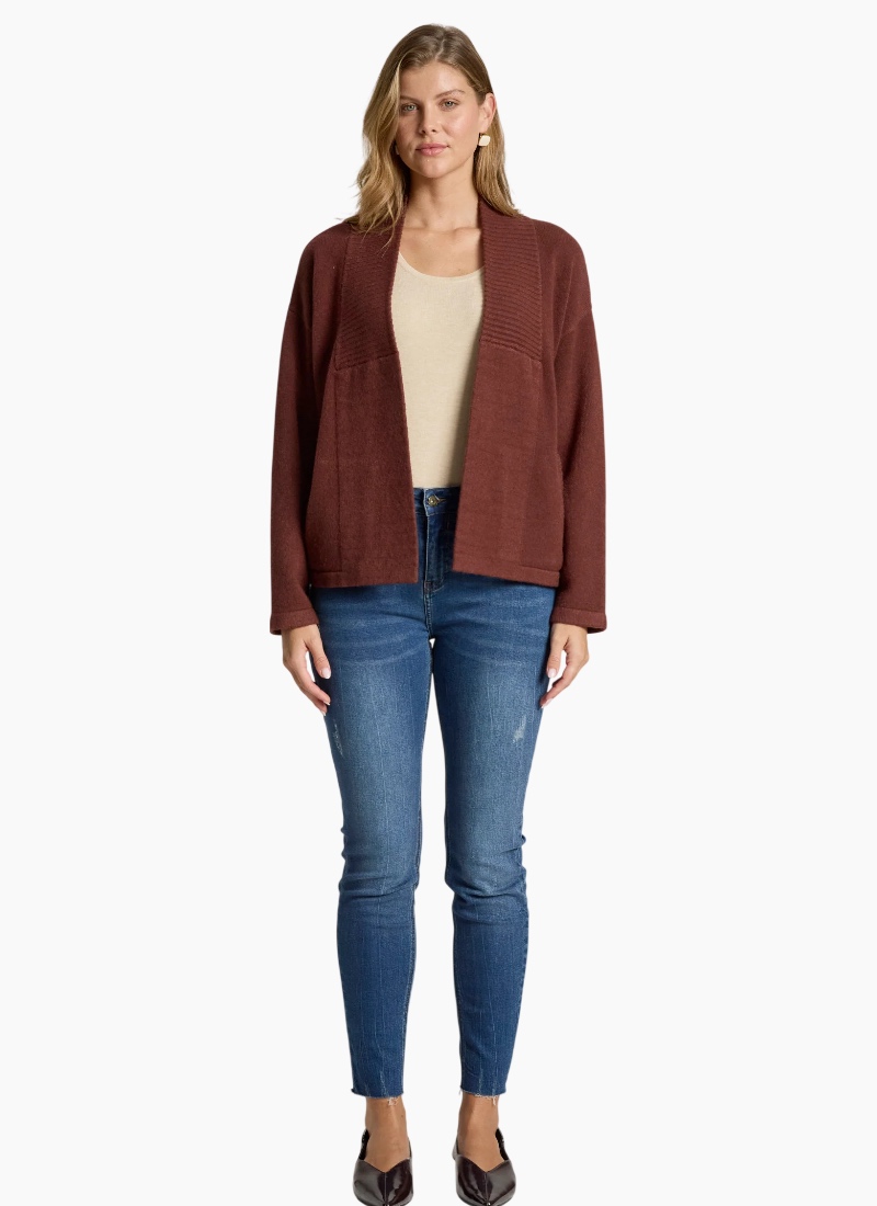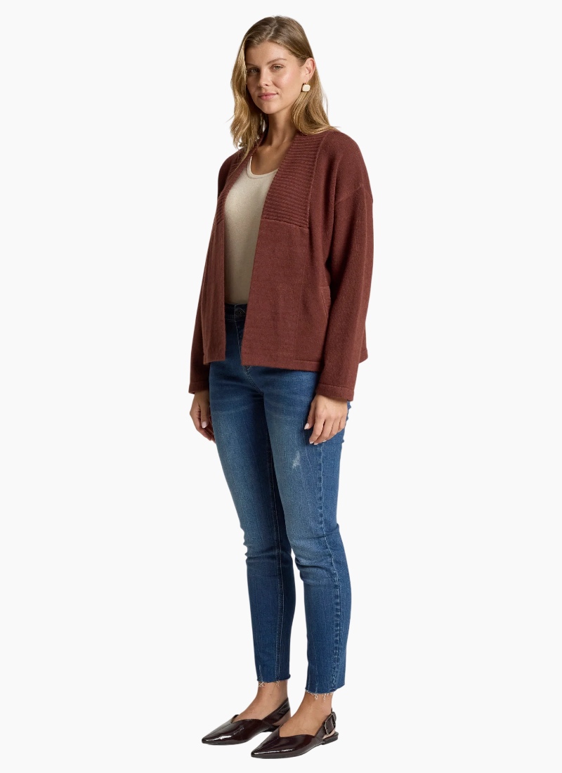 A flattering cropped cardigan designed to highlight the waist. Crafted from a soft knit blend, the Samira Crop Cardigan features a clean silhouette with subtle ribbed detailing through the centre front and practical front pockets. A polished yet easy layering piece for everyday wear. Features Cropped cardigan silhouette Ribbed detailing through centre front Front pockets Soft knit blend Flattering, easy-to-layer shape Care Cold gentle wash recommended.