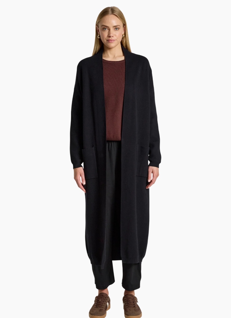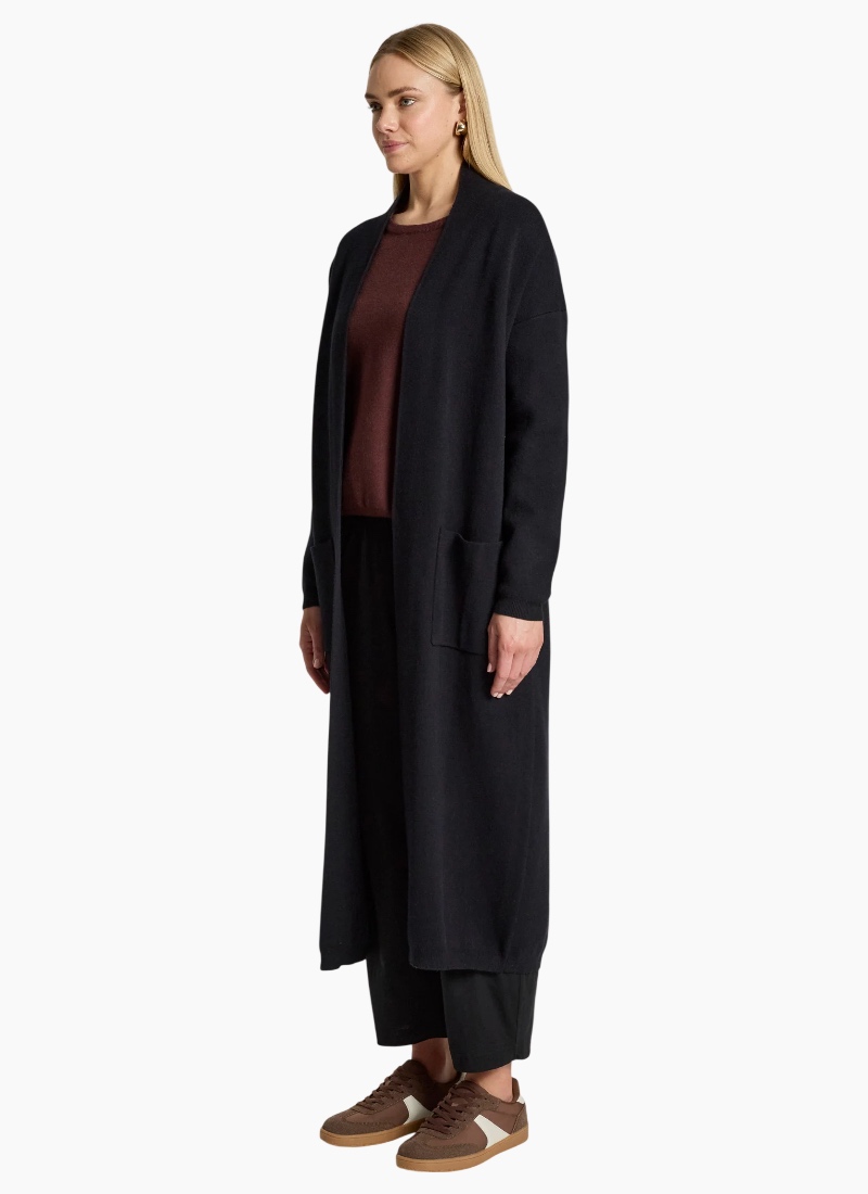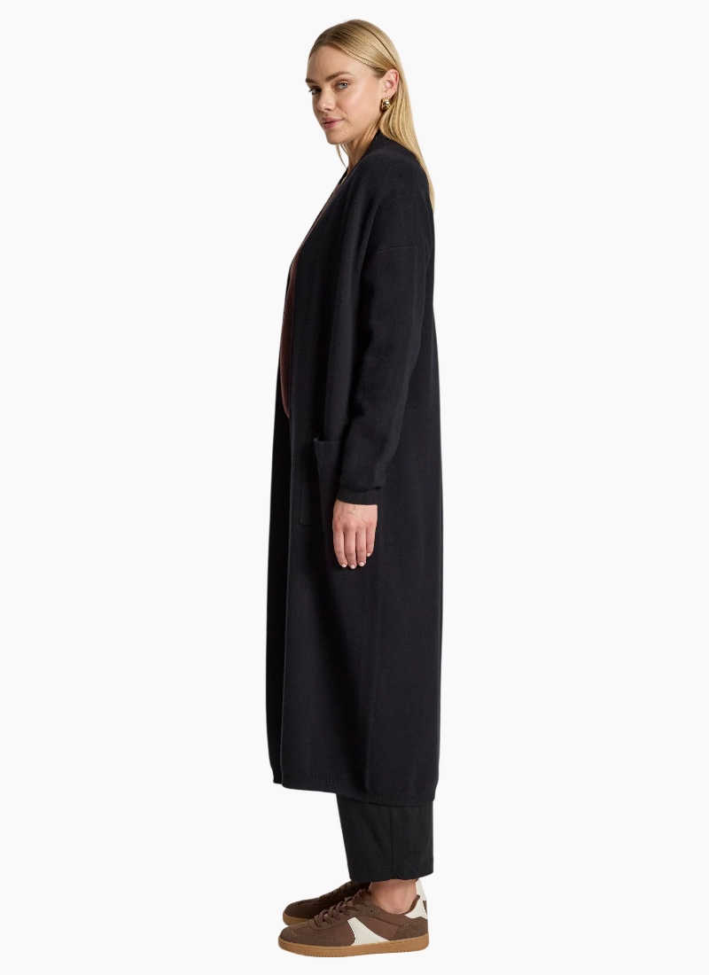 An effortless winter layering piece designed for warmth and everyday wear. The Zala Cardigan features a flattering longline silhouette with ribbed cuffs and hem for a relaxed, polished finish. Crafted from a soft knit blend and finished with practical front pockets, it’s an easy throw-on style for cooler days. Features Longline silhouette Ribbed cuffs and hem Front pockets Soft knit blend Relaxed fit Care Cold gentle wash recommended.