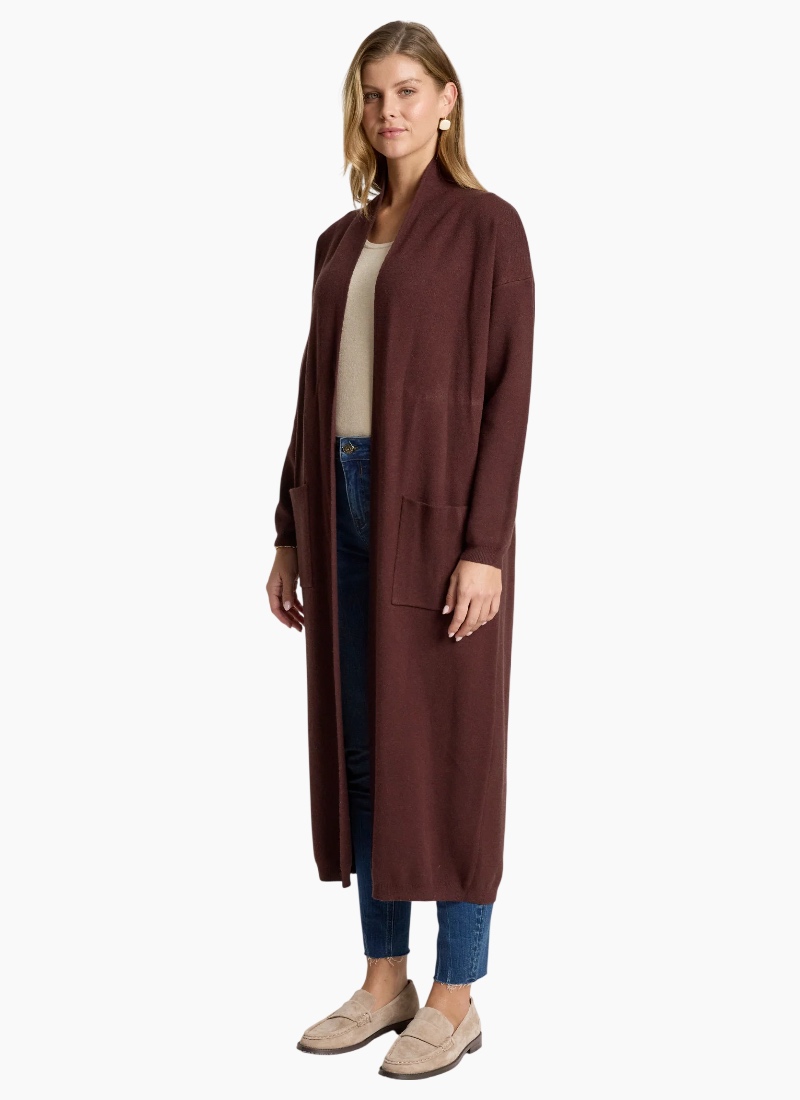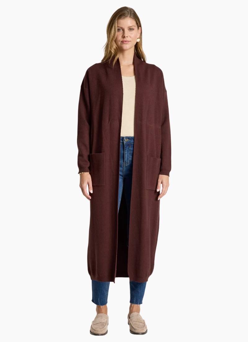 An effortless winter layering piece designed for warmth and everyday wear. The Zala Cardigan features a flattering longline silhouette with ribbed cuffs and hem for a relaxed, polished finish. Crafted from a soft knit blend and finished with practical front pockets, it’s an easy throw-on style for cooler days. Features Longline silhouette Ribbed cuffs and hem Front pockets Soft knit blend Relaxed fit Care Cold gentle wash recommended.