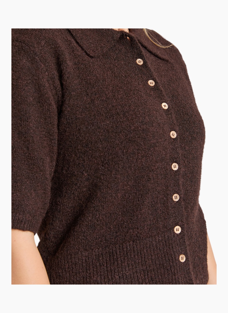Elevate your wardrobe with the timeless charm of the Fernie Button Knit, a versatile and sophisticated sweater perfect for any occasion. Crafted with precision by Foxwood, this knit features a flattering short-sleeve design and a button-up front that exudes elegance and ease. Made from a soft, high-quality fabric, the Fernie Button Knit offers unmatched comfort while maintaining a sleek and tailored fit. The collared neckline adds a touch of refinement, making it ideal for layering or wearing as a standalone piece. Its rich, earthy tone pairs seamlessly with jeans, skirts, or tailored pants, ensuring effortless style for workdays or casual outings. Whether you're dressing up for a meeting or keeping it casual for a weekend brunch, the Fernie Button Knit is your go-to choice for chic and comfortable fashion. Add this must-have sweater to your collection today and enjoy the perfect blend of style and practicality.