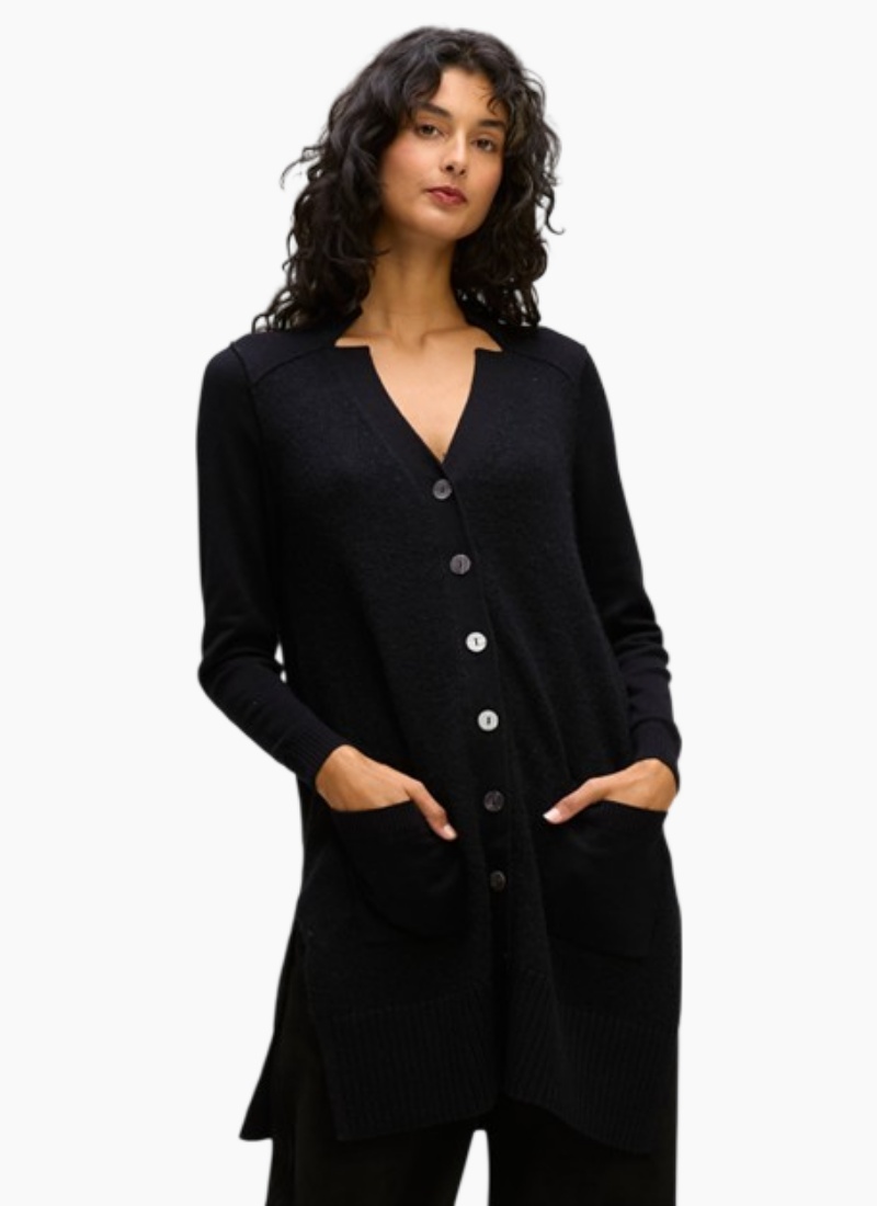 Introducing the Fluffy Detail Cardi Black from LD & Co. This longline cardigan pairs soft texture with clean, effortless tailoring for an elevated everyday layer.