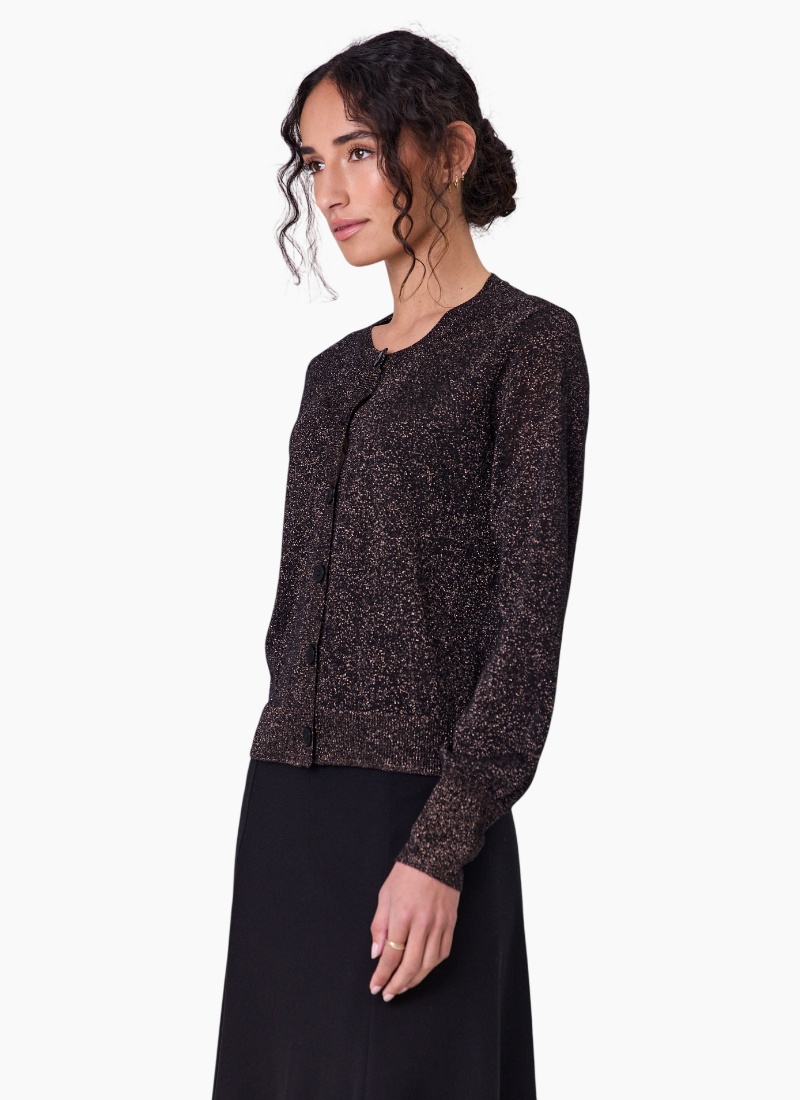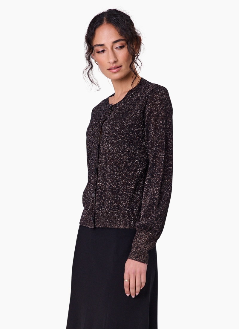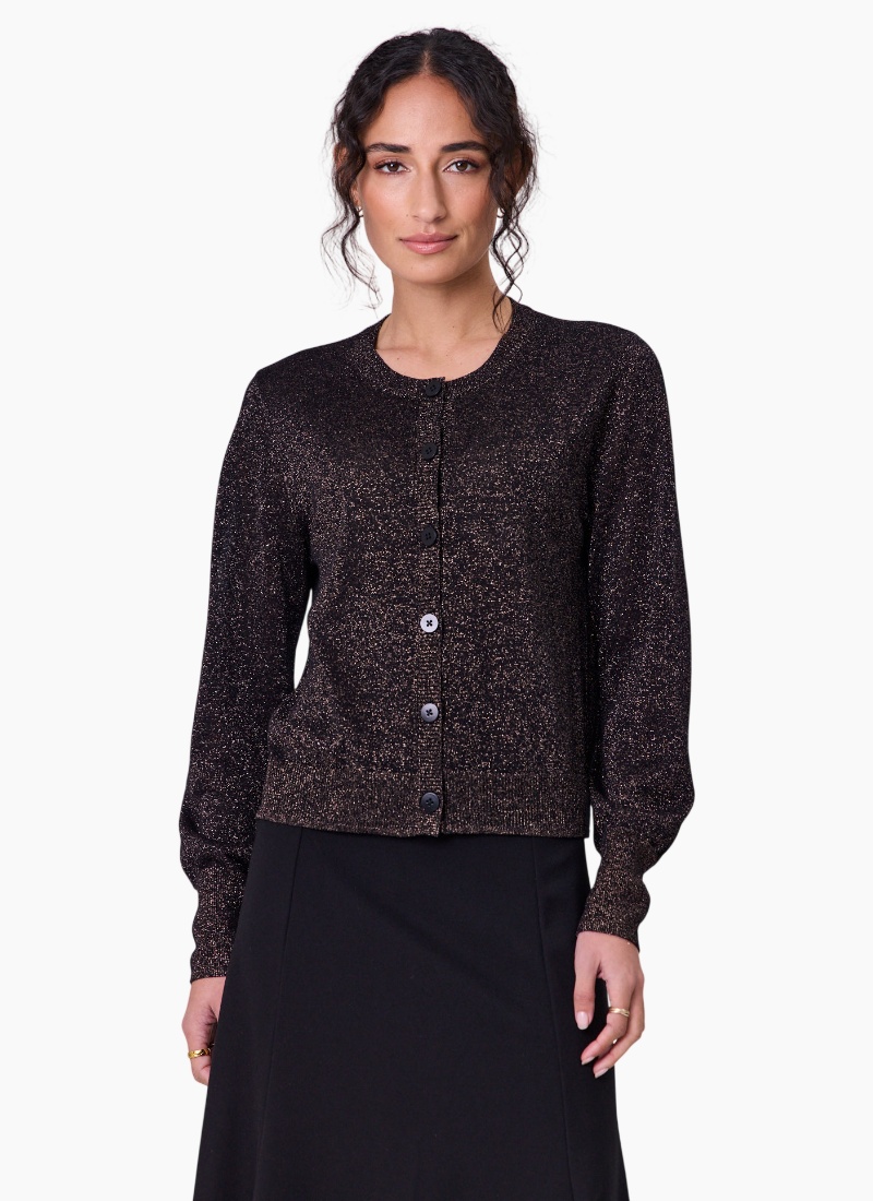 - Part of the Jumpers & Cardigans edit, this black cardigan with gold metallic detailing lifts both casual and dressier looks
