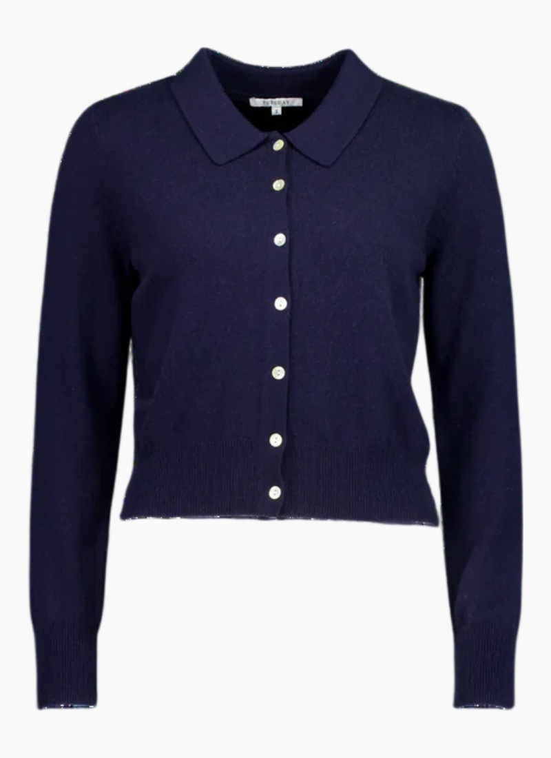 Introducing the JET CARDI from Tuesday Label. A refined navy cardigan crafted for everyday elegance and effortless layering.