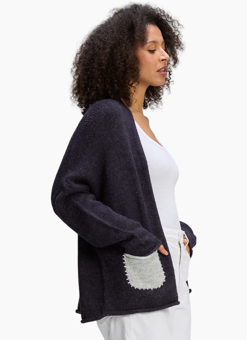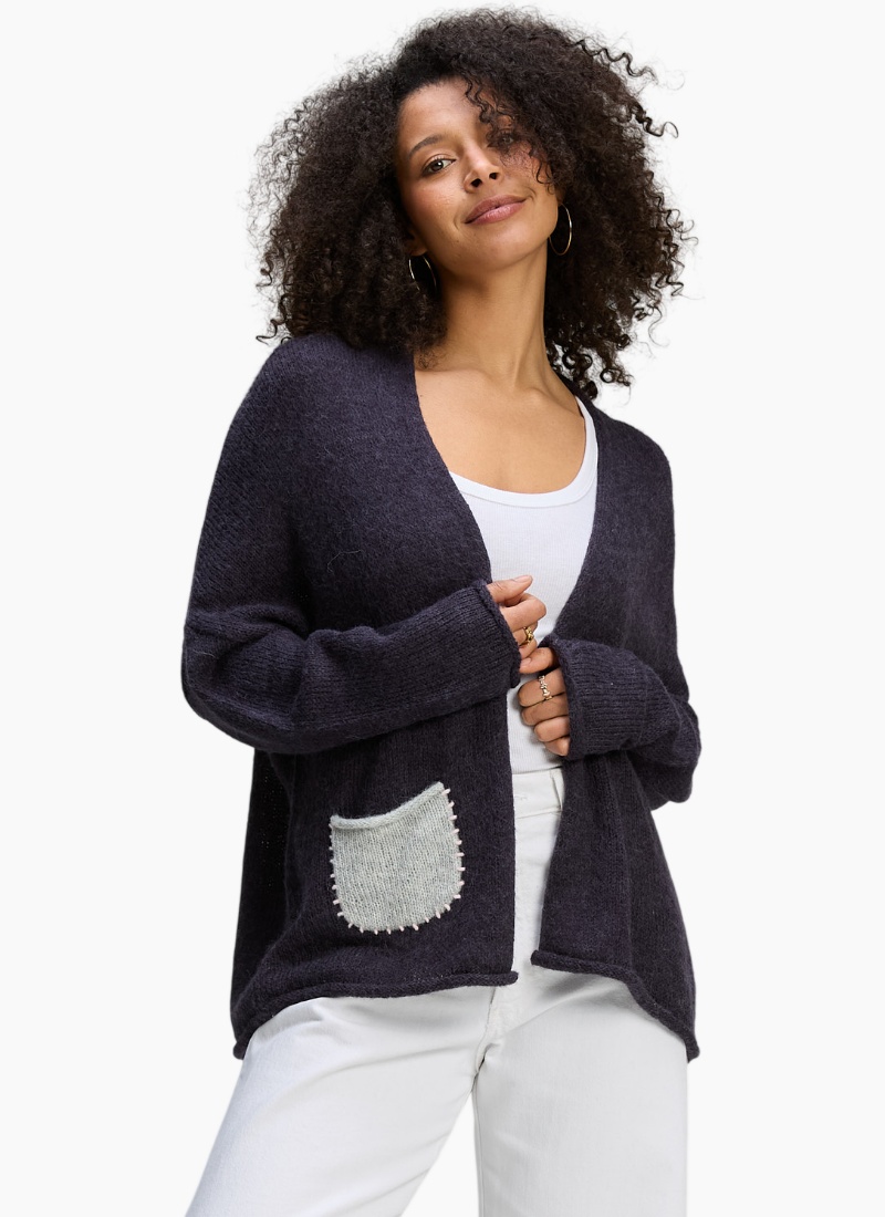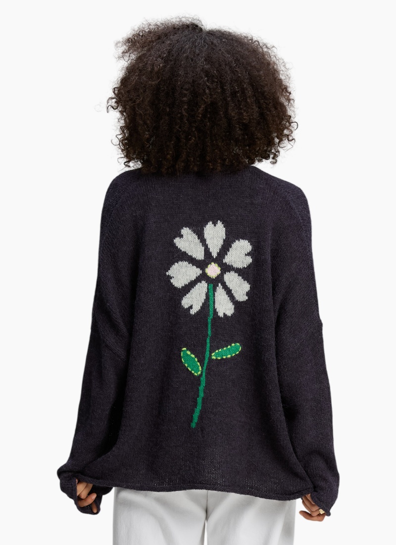 Introducing the Bloom Back Cardi Ink from Zaket & Plover. This relaxed open-front cardigan is a soft, everyday layer that elevates casual dressing with effortless style.