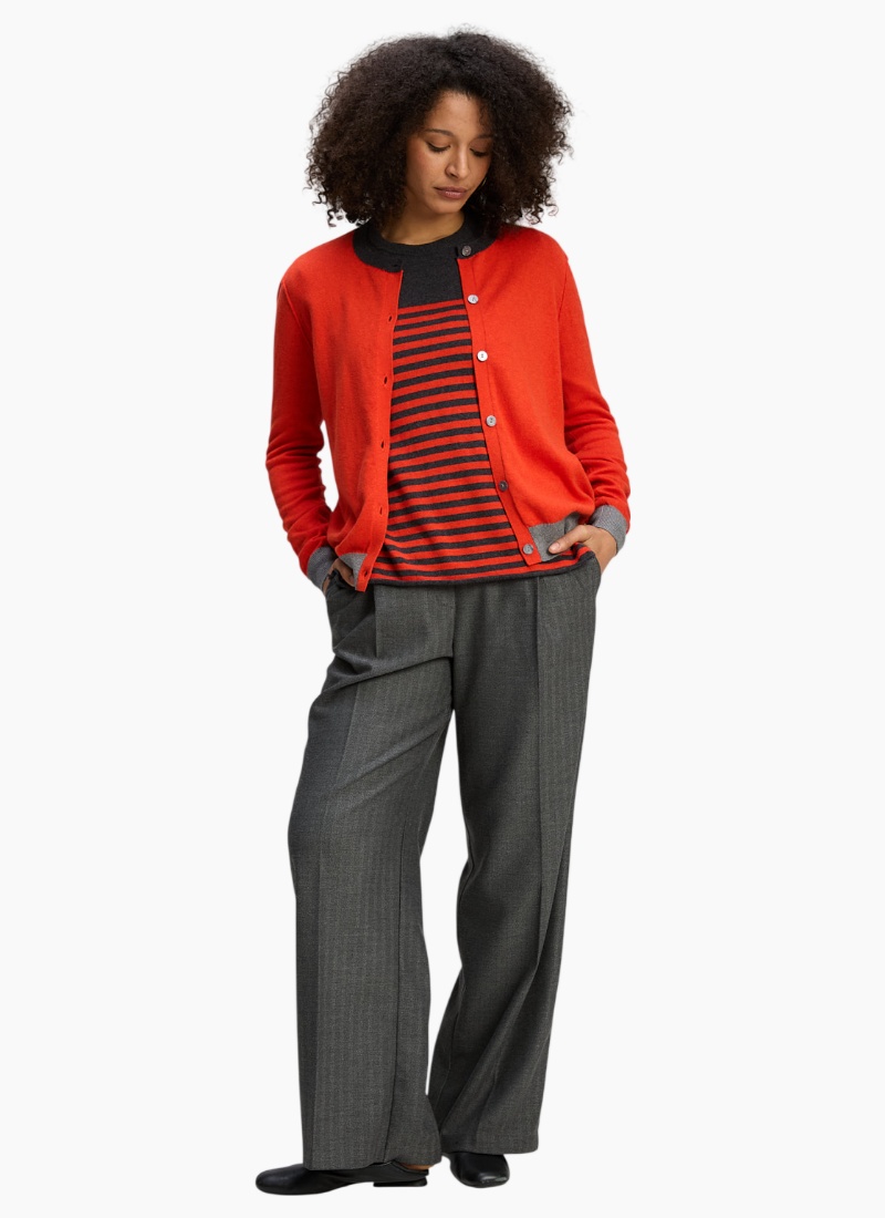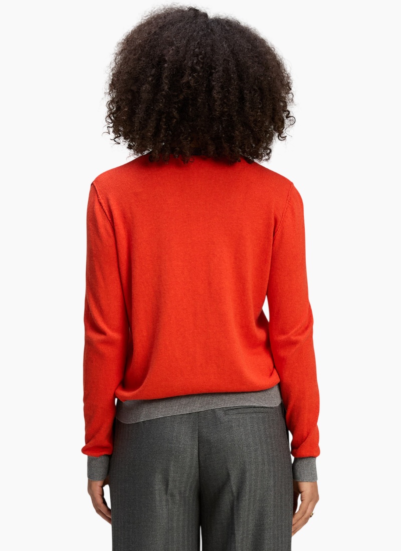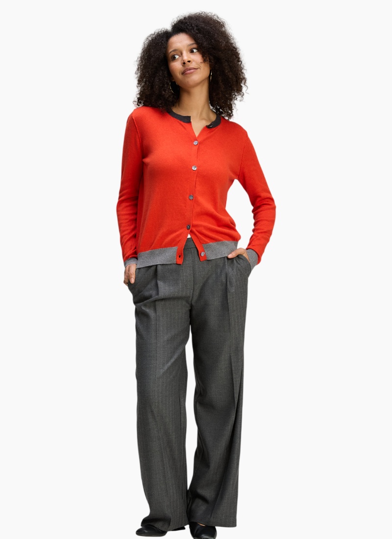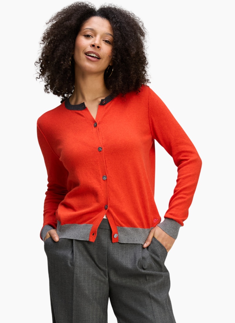 Introducing the Zaket & Plover Crew Cardi Essential Paprika. This refined cardigan delivers a bright paprika colour and effortless layering for everyday sophistication.