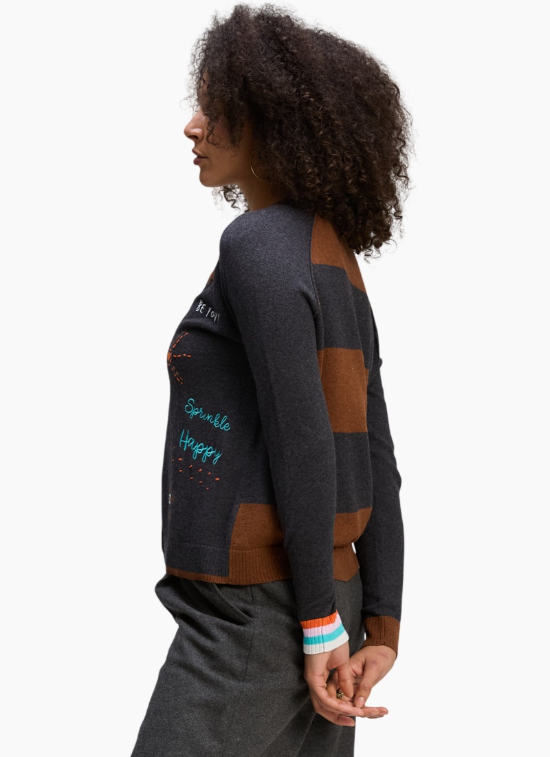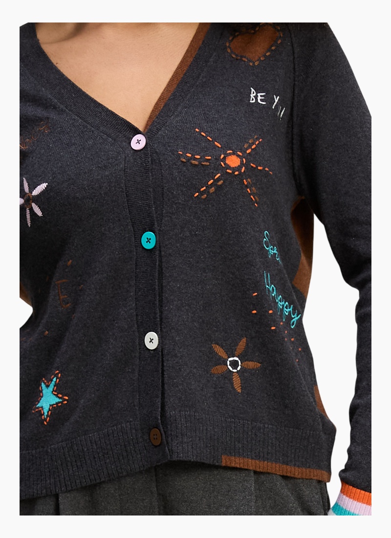 Introducing the Good Energy Cardi from Zaket & Plover. This whimsical charcoal cardigan mixes playful embroidery with relaxed, wearable comfort.