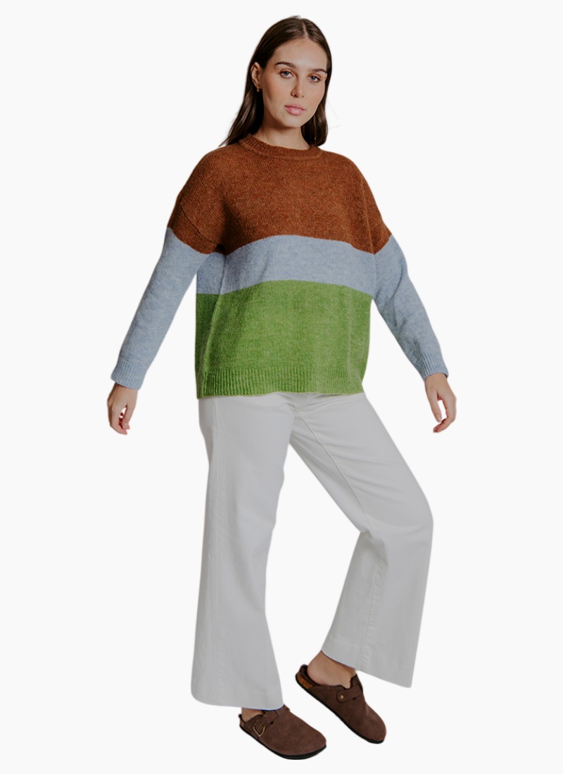 Bella Block Stripe Pullover - Cinnamon/Leaf Green