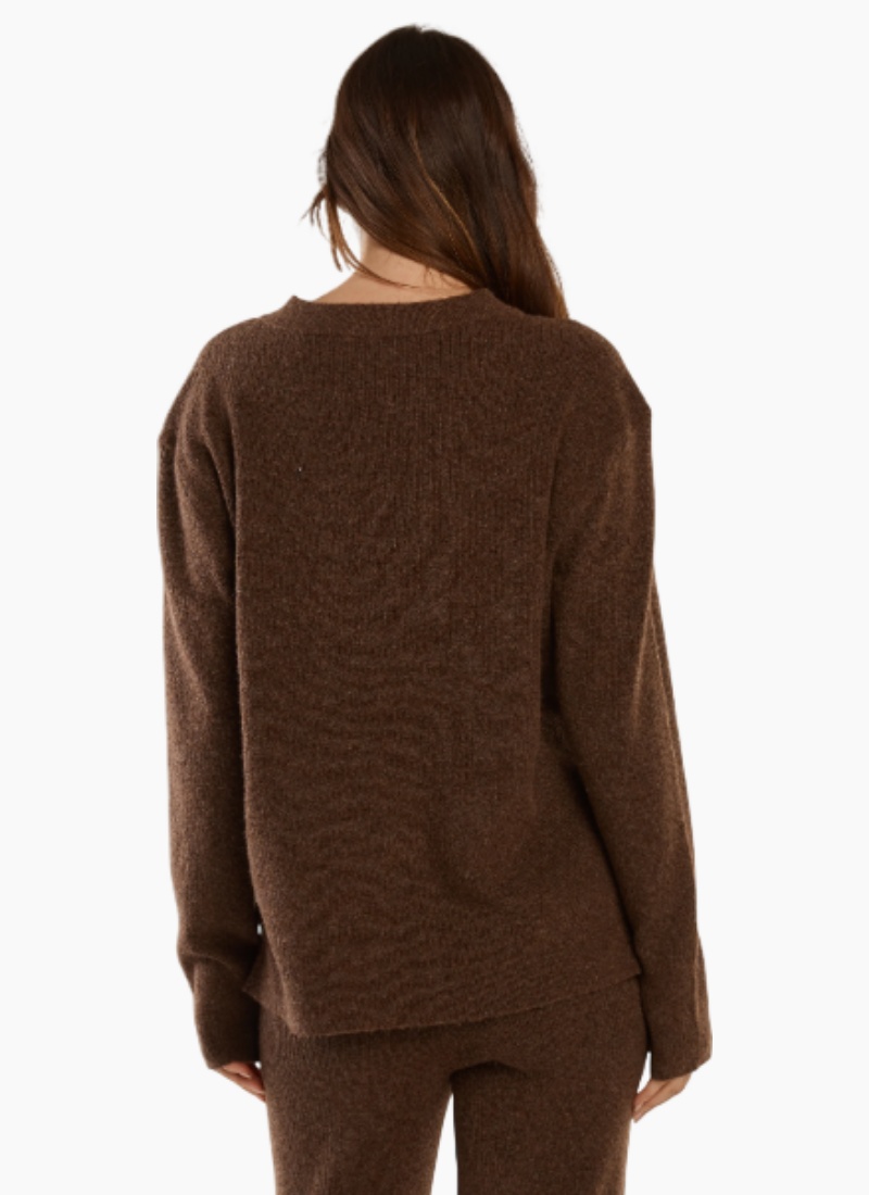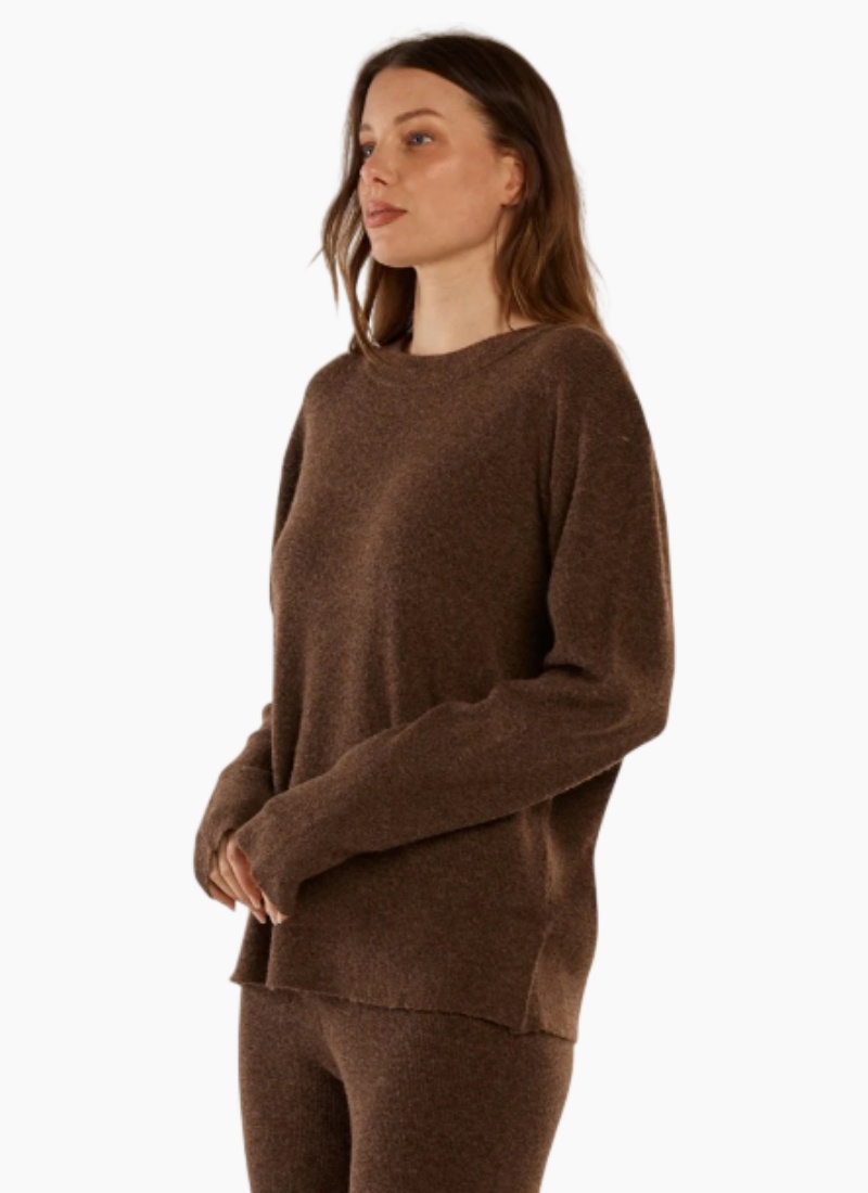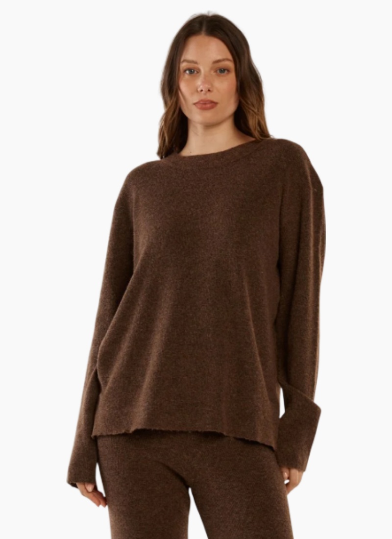 Introducing the RUBY KNIT SWEATER ESPRESSO from Betty Basics. This relaxed, luxuriously soft jumper brings effortless warmth and polish to your everyday wardrobe. The Ruby Knit Sweater delivers cosy comfort with a classic, elevated look. Designed in a soft knit fabrication, it features a timeless crew neckline and ribbed trims. Easy to pull on and wear throughout the day. A comfortable transeasonal knit for relaxed everyday styling.