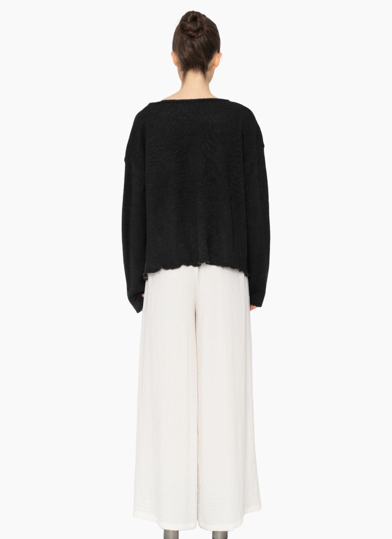 - Generous, relaxed silhouette with long sleeves and a softly scooped neckline, perfect for layering over shirts or light dresses