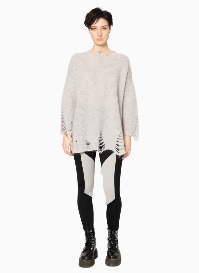 - Long Silver from Bone and Arrow. This relaxed silver jumper blends effortless edge with cosy comfort for a distinctive boutique look.