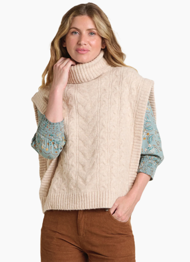 For a laidback take on a classic, try the Cable Knitted Vest by Brakeburn. Its open sleeves add a teeny bit of slouch, for a flattering and relaxed fit. Super soft and ideal for layering, this open sleeve cable knitted vest’s neutral colour will be a versatile addition to any wardrobe.