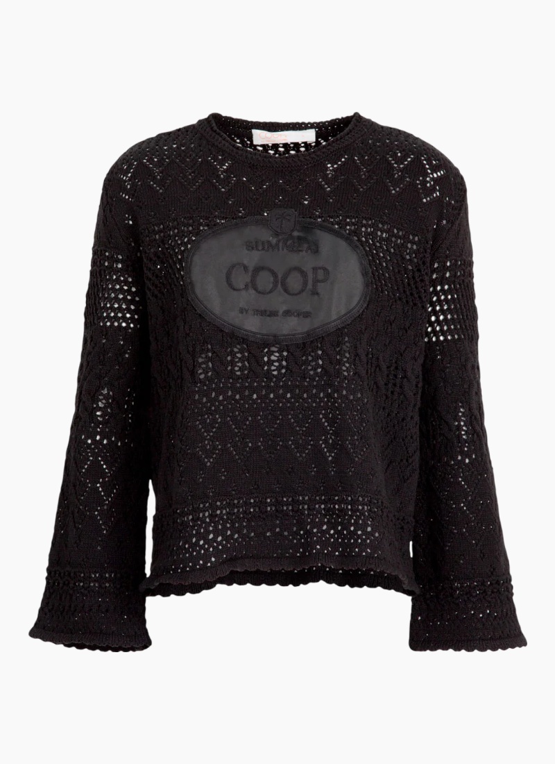 - Crafted from a breathable cotton knit with intricate openwork detailing, ideal for layering in cooler seasons