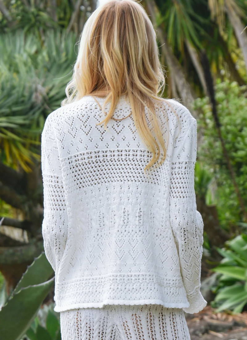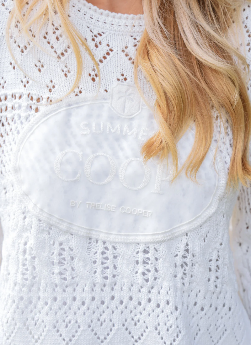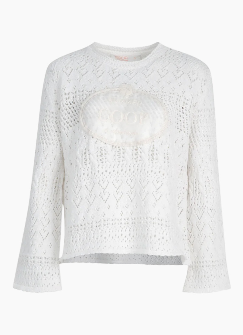 Introducing the COOP Boho Breeze Sweater in White. This airy knit jumper brings relaxed bohemian charm to your wardrobe.