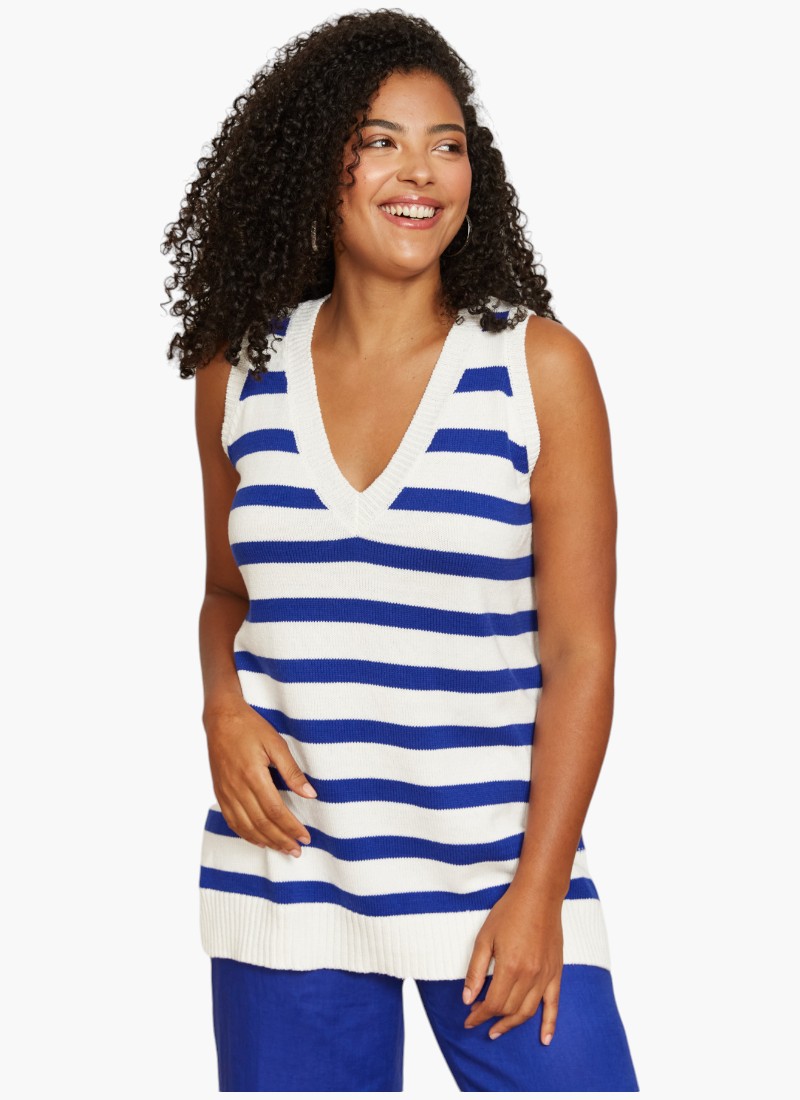 Add a dose of preppy flair to your look with the La Sable Knit Vest. With a relaxed longline fit, sleeveless design and stylish contrast stripes, this vest brings a touch of cool sophistication to any outfit. Its lightweight design and comfortable fit ensure warmth without adding unnecessary bulk. Pair it with shorts for a laid-back vibe, or layer it over a button-down shirt and trousers for a more polished finish.