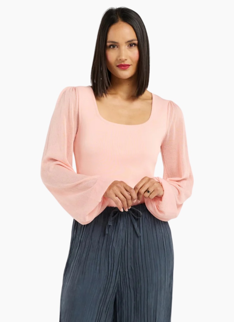 Discover the Et Alia Blush Lucy Knit Top, a beautifully designed piece that effortlessly enhances any outfit. Made from premium stretch fabric, it features a soft, feminine scooped neckline that flatters all shapes, draping gently through the body for a refined yet comfortable fit. Material: 70% Viscose, 30% Nylon Feminine scooped neckline for a flattering fit Delicately sheer sleeves for graceful movement Refined, comfortable drape through the body Versatile styling options for day and night