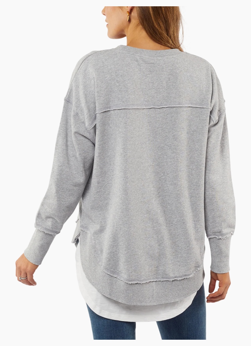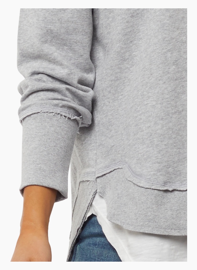 - Classic crew neckline with subtle raw-edge detailing adds boutique character