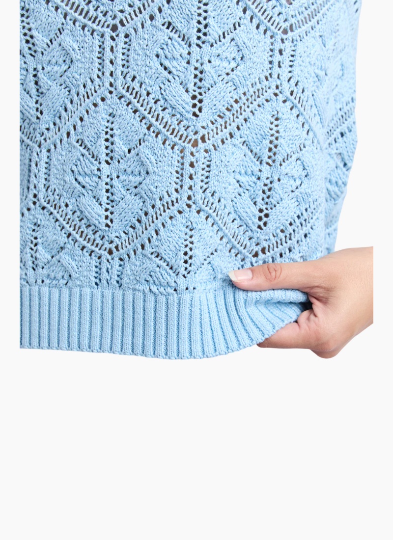 Crochet all the way! The ultimate in seasonal style the Luna Knit Vest is a cute pointelle sleeveless knit in cool vintage white that will look great atop any of your stylish bottoms.Pointelle Knit Design Round Neckline Sleeveless 100% Cotton Our model is 176cm and wears Size 10