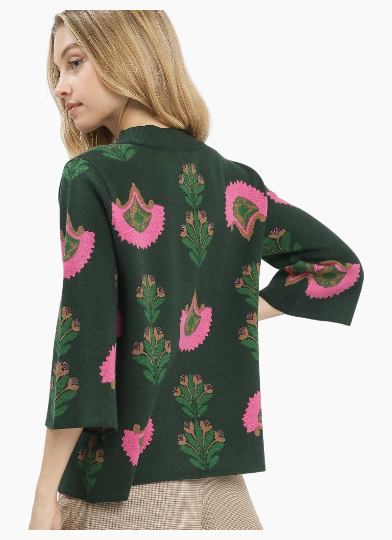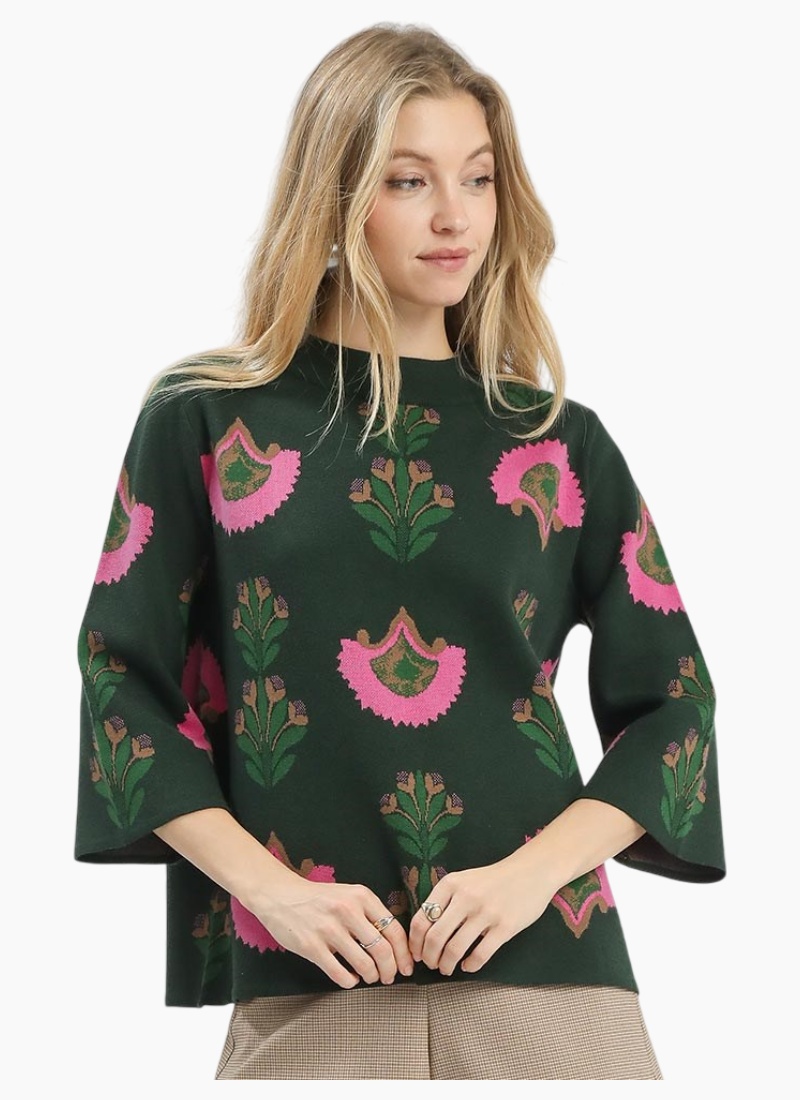 Floral knit sweater with 3/4-length sleeves