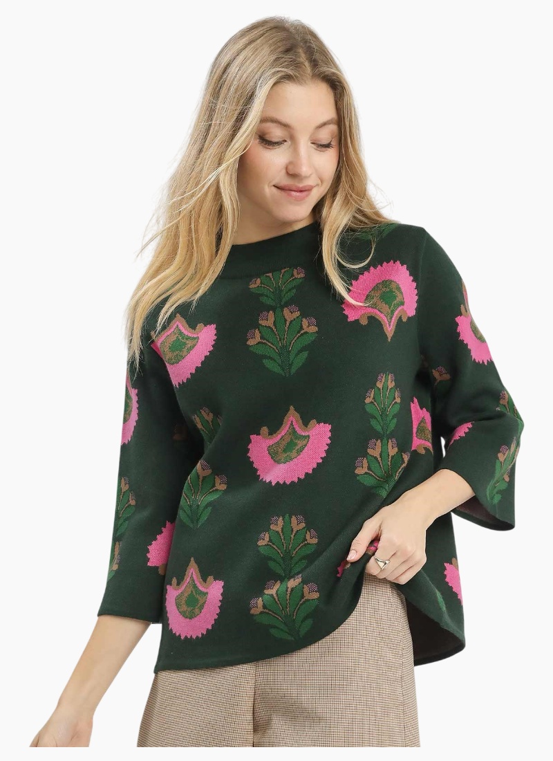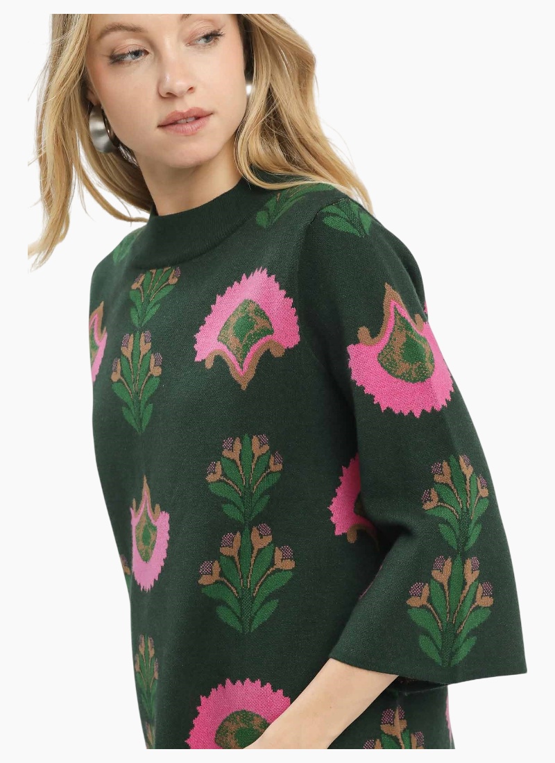 Jacquard-style knit with bold floral motifs