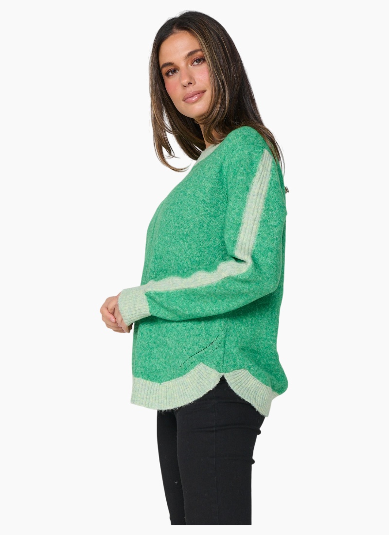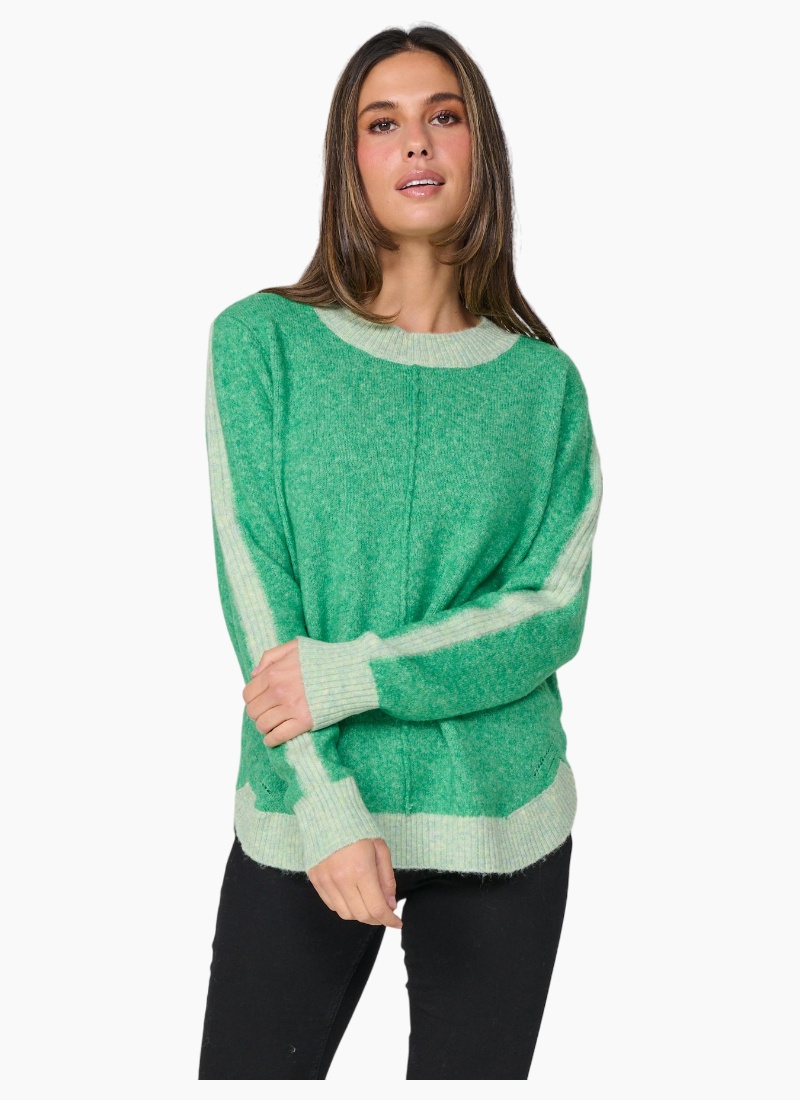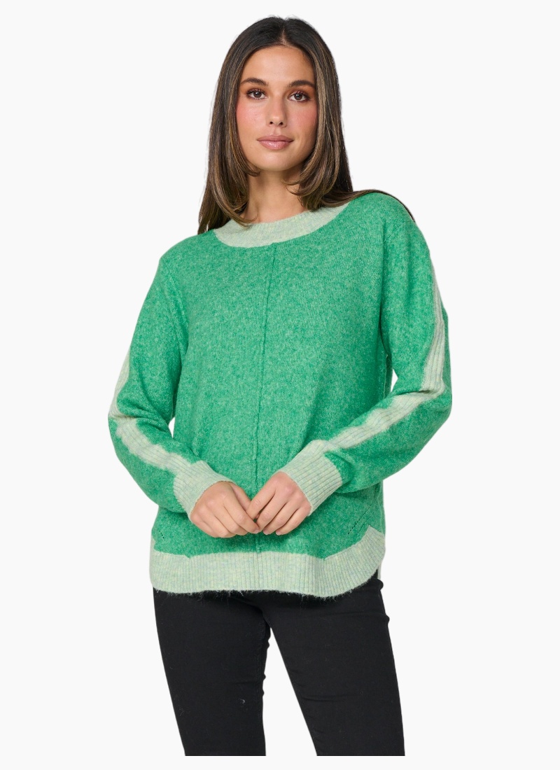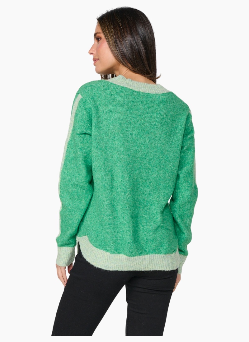 Contrast detail puts a contemporary spin on this very soft and comfortable sweater.