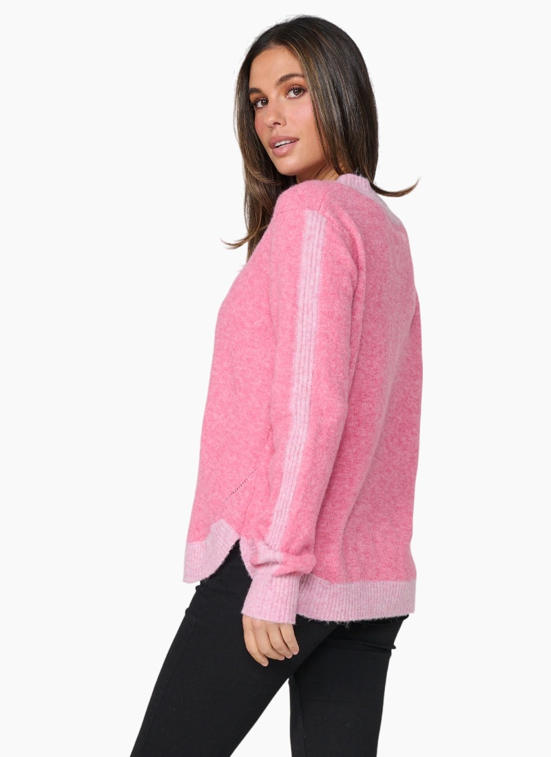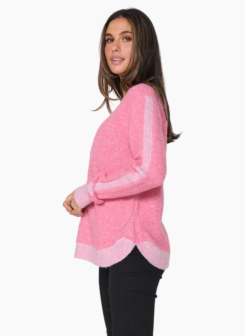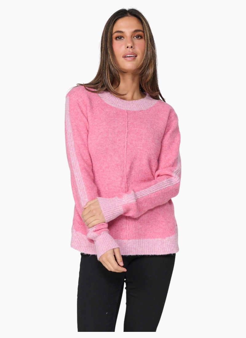 Contrast detail puts a contemporary spin on this very soft and comfortable sweater.
