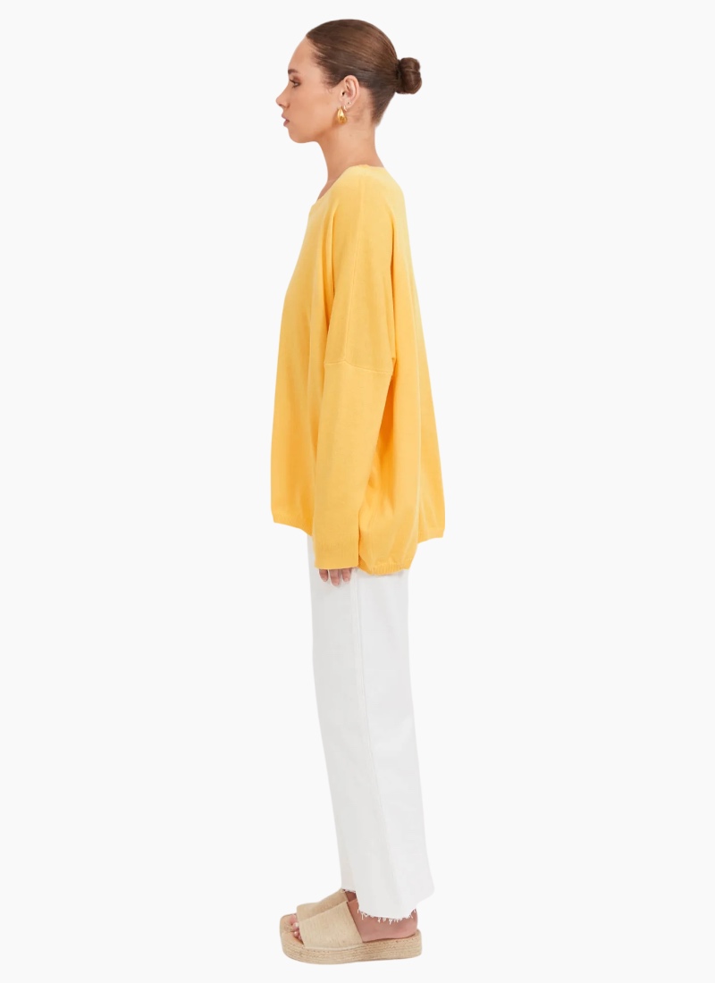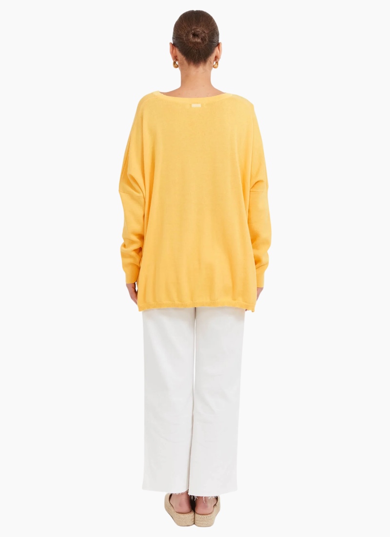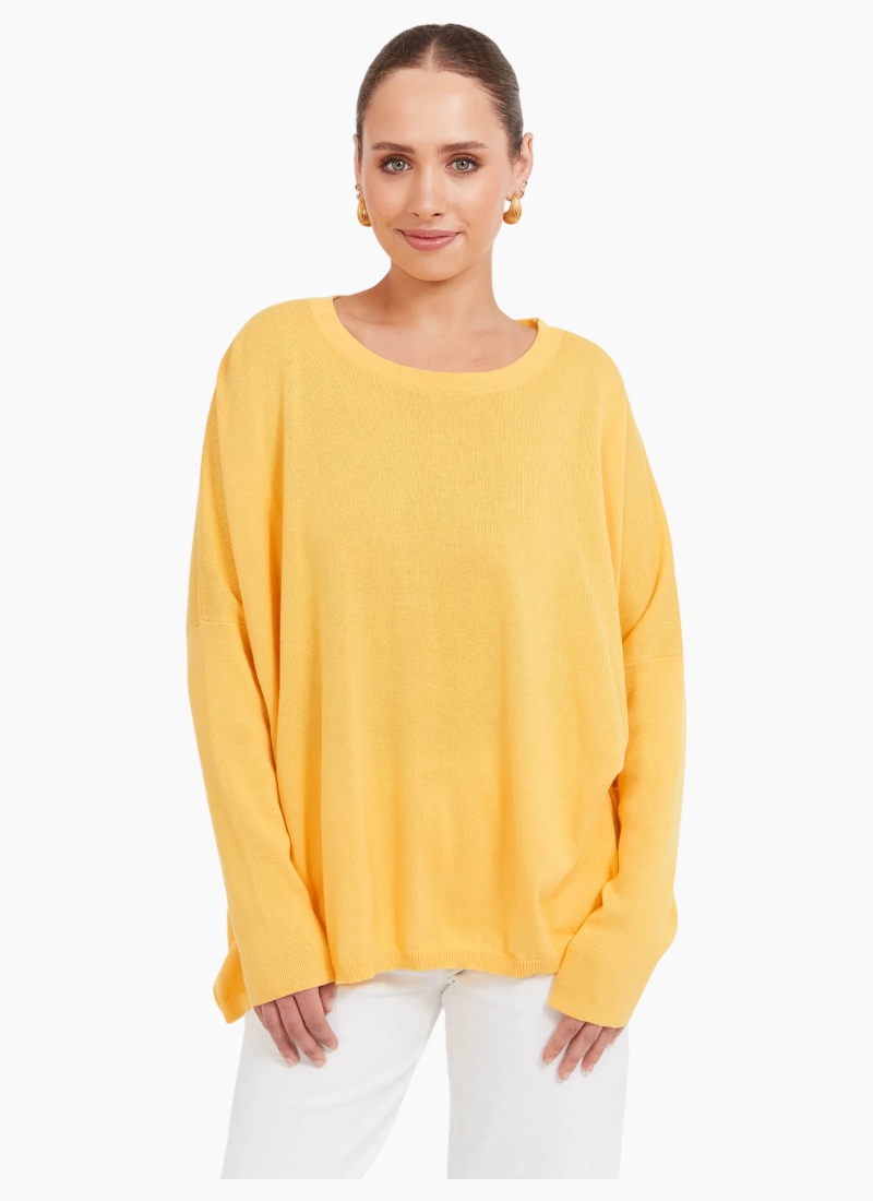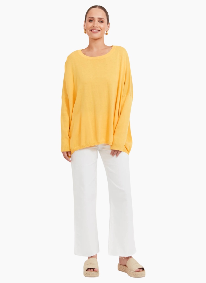 A best-seller, and for good reason. The Haven Jumper is your go-to knit for a pop of colour and effortless layering. Crafted from a soft cotton blend, it features a classic crew neckline, dropped shoulders, and long sleeves for a relaxed fit that works for everyday wear. The below-hip length offers a little extra coverage.Layer over a collared shirt with wide-leg denim for an off-duty look, or pair with linen pants and slides for casual, throw-on ease. Round crew neckline Drop shoulders for relaxed shape Long sleeves Below-hip length Subtle rubber logo detail at back neck Cotton blend