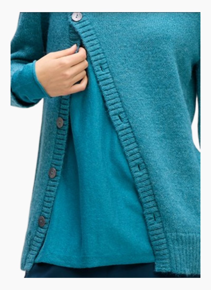- Asymmetric button detailing along the front adds subtle, modern interest