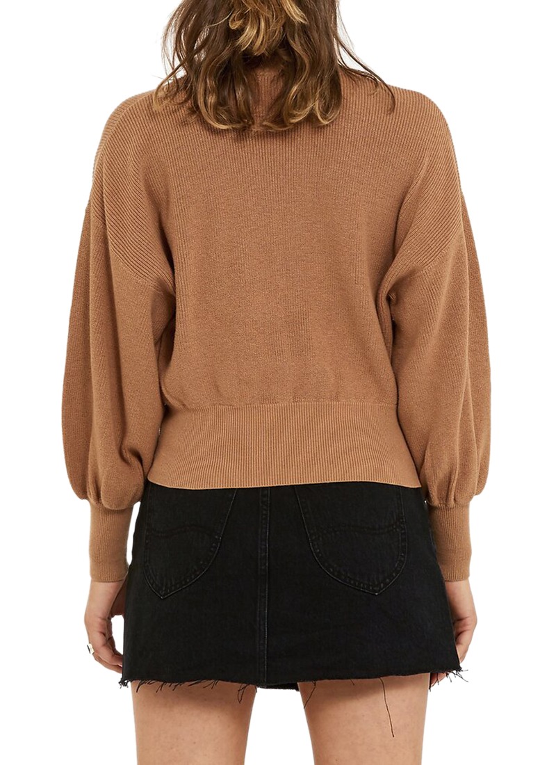 Our best-selling Prime Knit is back this season in a lush carmel colourway. Crafted in a beautiful 100% cotton knit fabric, it features a roll neck and billow sleeves with a body shaping waist band that can be tucked into high waisted dneim.