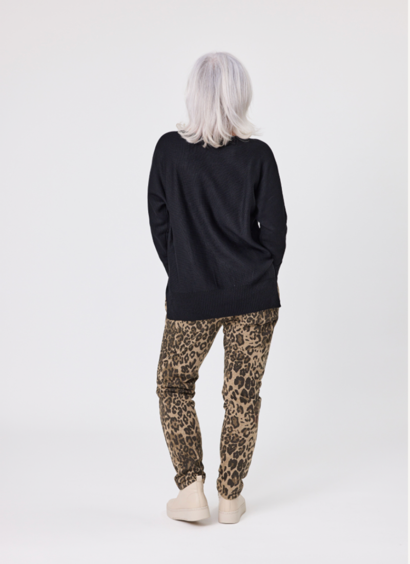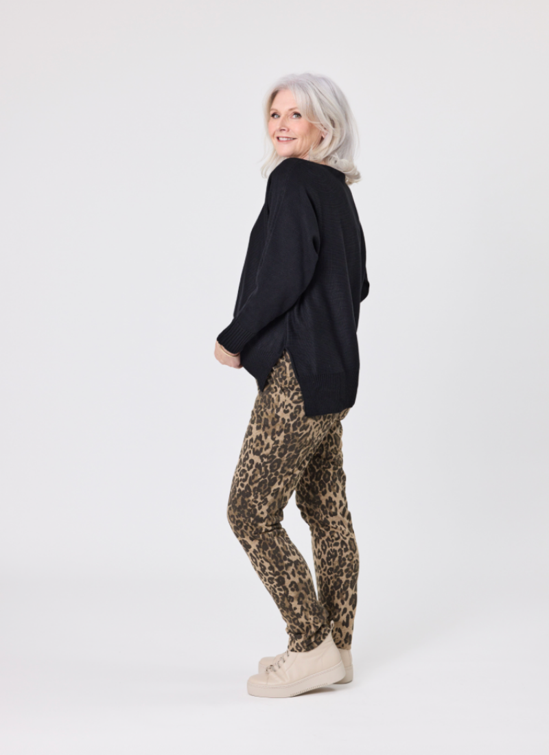 Oversized long-sleeve knit sweater, its dropped shoulder gives a relaxed and flowy silhouette. • Boat neckline, a high-low hem and side slits complete this comfy style. • Ribbed cuffs and hem, it is made from a blend of Viscose and Poly